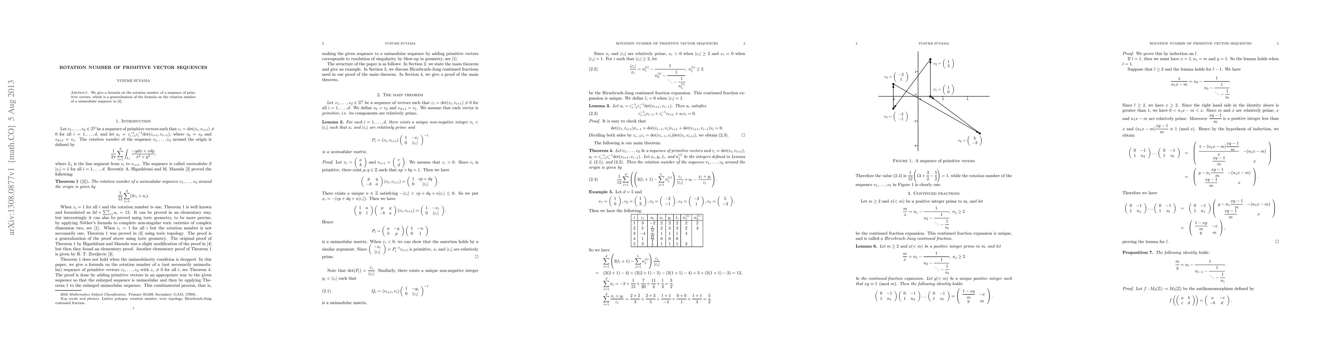 We give a formula on the rotation number of a sequence of primitive vectors, which is a generalization of the formula on the rotation number of a unimodular sequence in \cite{Higashitani and Masuda}.