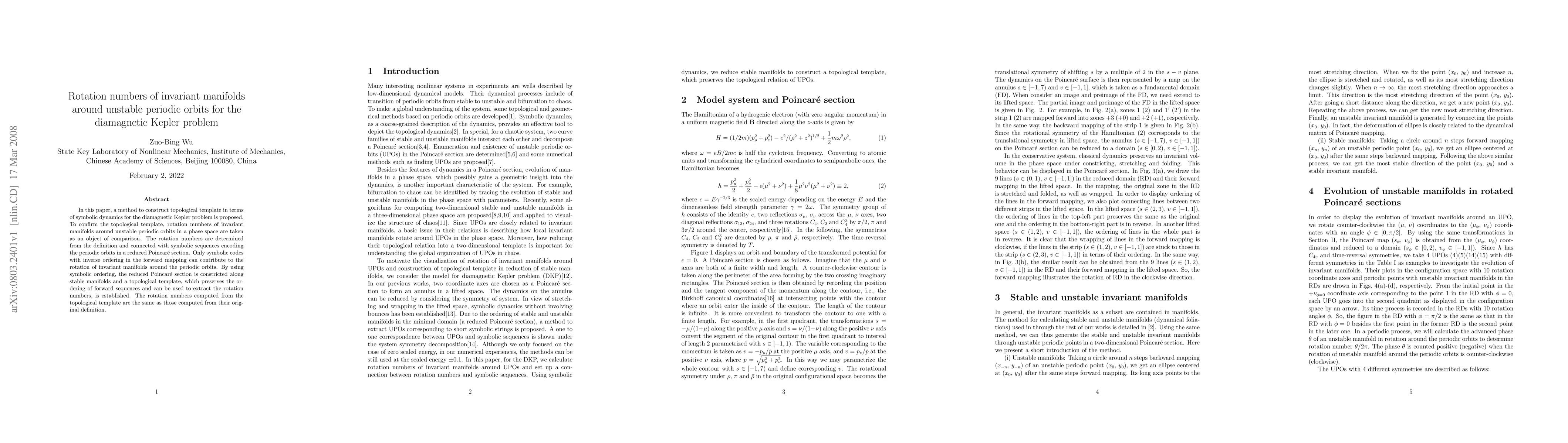 This paper proposes a method to construct a topological template using symbolic dynamics for the diamagnetic Kepler problem, confirming it by comparing rotation numbers of invariant manifolds around unstable periodic orbits. The rotation numbers are derived from symbolic sequences and match those computed from their original definition.
