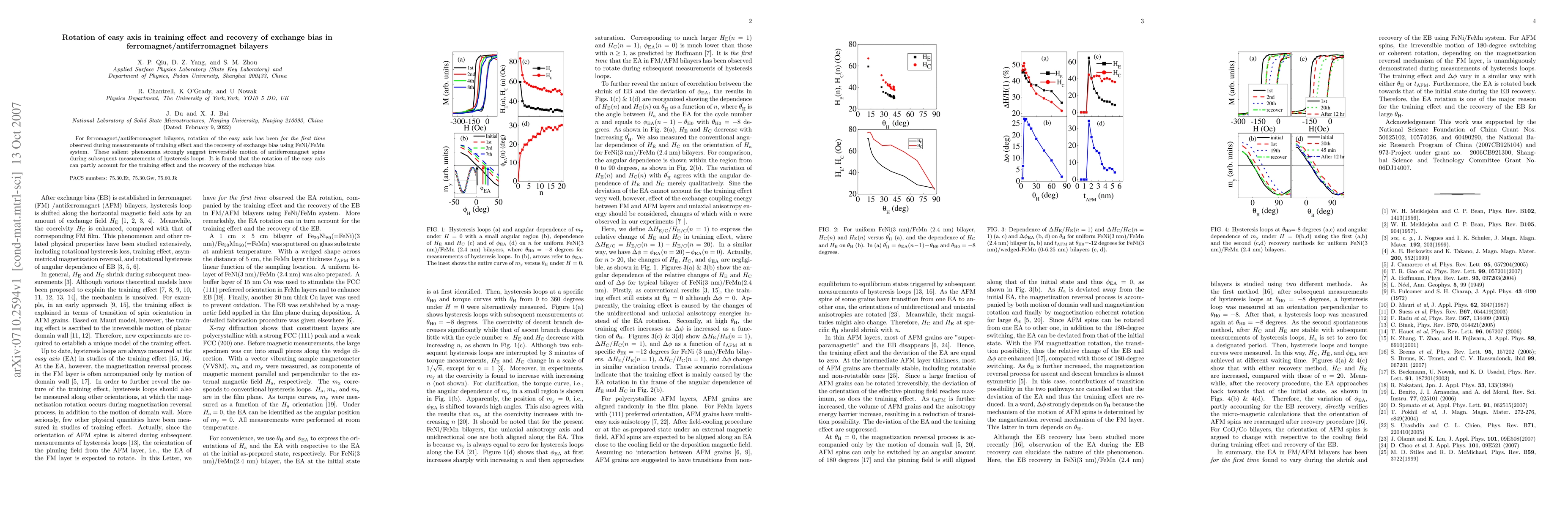 This study observes, for the first time, the rotation of the easy axis in FeNi/FeMn bilayers during training effect and recovery of exchange bias, indicating irreversible antiferromagnet spin motion and partially explaining the phenomena.