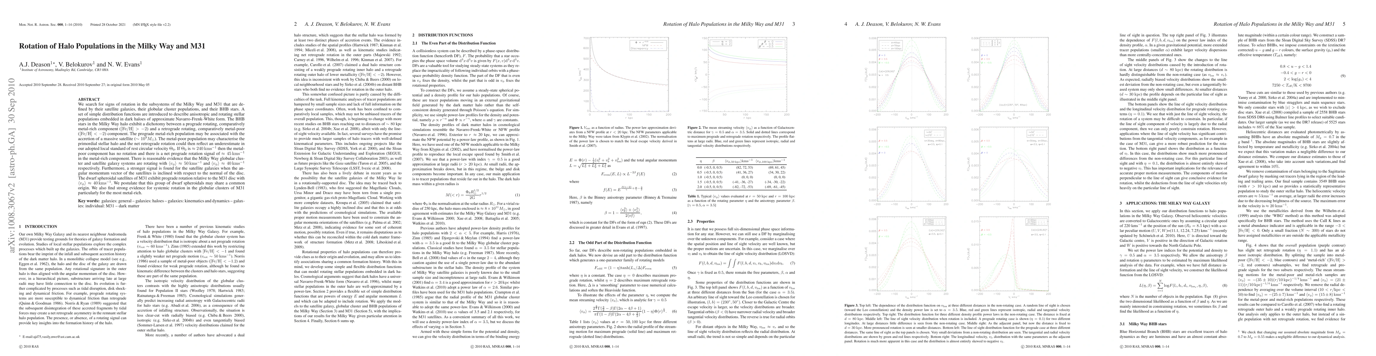This paper investigates rotation in the satellite galaxies, globular clusters, and blue horizontal branch (BHB) stars of the Milky Way and M31. It finds prograde rotation in metal-rich BHB stars of the Milky Way, possibly due to satellite accretion, and retrograde rotation in metal-poor BHB stars, suggesting a primordial halo origin. Both globular cluster systems and satellite galaxies show rotation, with M31's dwarf spheroidal satellites likely sharing a common origin.