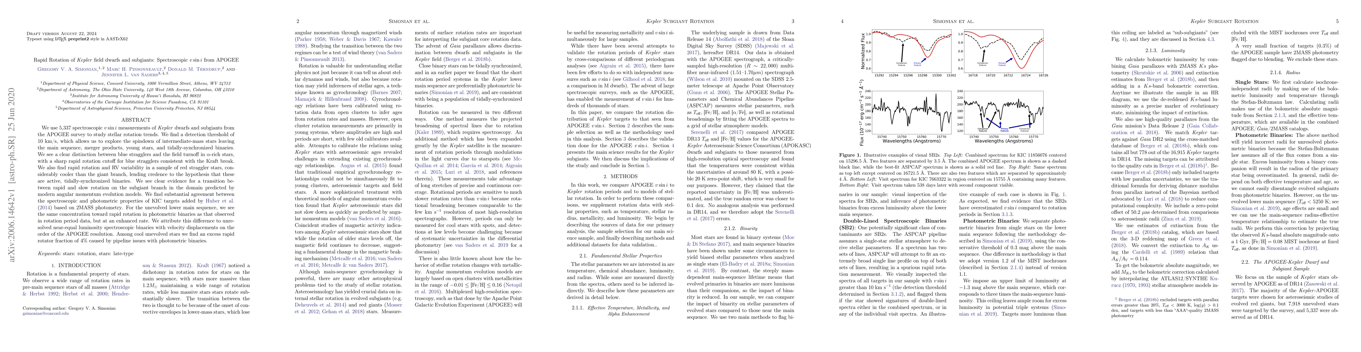 We use 5,337 spectroscopic $v \sin i$ measurements of Kepler dwarfs and subgiants from the APOGEE survey to study stellar rotation trends. We find a detection threshold of 10 km/s, which allows us to explore the spindown of intermediate-mass stars leaving the main sequence, merger products, young stars, and tidally-synchronized binaries. We see a clear distinction between blue stragglers and the field turnoff in $\alpha$-rich stars, with a sharp rapid rotation cutoff for blue stragglers consistent with the Kraft break. We also find rapid rotation and RV variability in a sample of red straggler stars, considerably cooler than the giant branch, lending credence to the hypothesis that these are active, tidally-synchronized binaries. We see clear evidence for a transition between rapid and slow rotation on the subgiant branch in the domain predicted by modern angular momentum evolution models. We find substantial agreement between the spectroscopic and photometric properties of KIC targets added by Huber et al (2014) based on 2MASS photometry. For the unevolved lower main sequence, we see the same concentration toward rapid rotation in photometric binaries as that observed in rotation period data, but at an enhanced rate. We attribute this difference to unresolved near-equal luminosity spectroscopic binaries with velocity displacements on the order of the APOGEE resolution. Among cool unevolved stars we find an excess rapid rotator fraction of 4% caused by pipeline issues with photometric binaries.