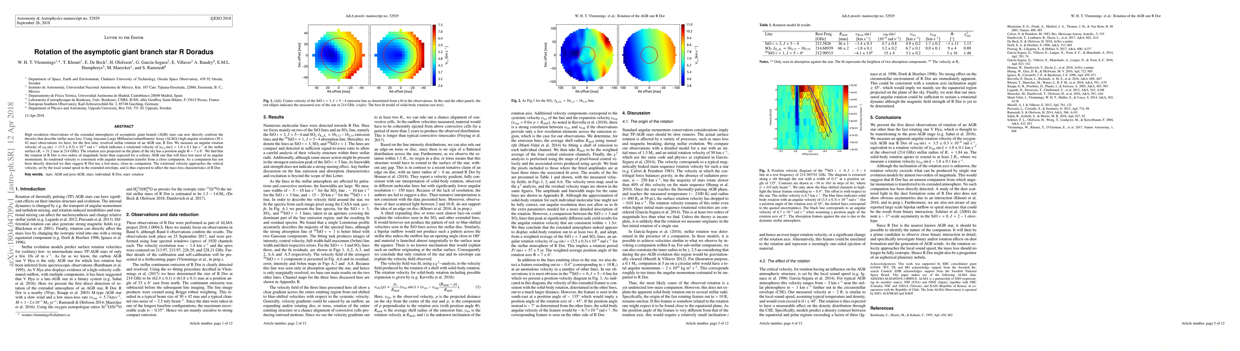 High resolution observations of the extended atmospheres of asymptotic giant branch (AGB) stars can now directly confront the theories that describe stellar mass loss. Using Atacama Large Millimeter/submillimeter Array (ALMA) high angular resolution ($30\times42$~mas) observations we have, for the first time, resolved stellar rotation of an AGB star, R~Dor. We measure an angular rotation velocity of $\omega_R\sin{i}=(3.5\pm0.3)\times10^{-9}$~rad~s$^{-1}$ which indicates a rotational velocity of $|\upsilon_{\rm rot}\sin{i}|=1.0\pm0.1$~km~s$^{-1}$ at the stellar surface ($R_*=31.2$~mas at $214$~GHz). The rotation axis projected on the plane of the sky has a position angle $\Phi=7\pm6^\circ$. We find that the rotation of R Dor is two orders of magnitude faster than expected for a solitary AGB star that will have lost most of its angular momentum. Its rotational velocity is consistent with angular momentum transfer from a close companion. As a companion has not been directly detected we thus suggest R~Dor has a low-mass, close-in, companion. The rotational velocity approaches the critical velocity, set by the local sound speed in the extended envelope, and is thus expected to affect the mass loss characteristics of R~Dor.