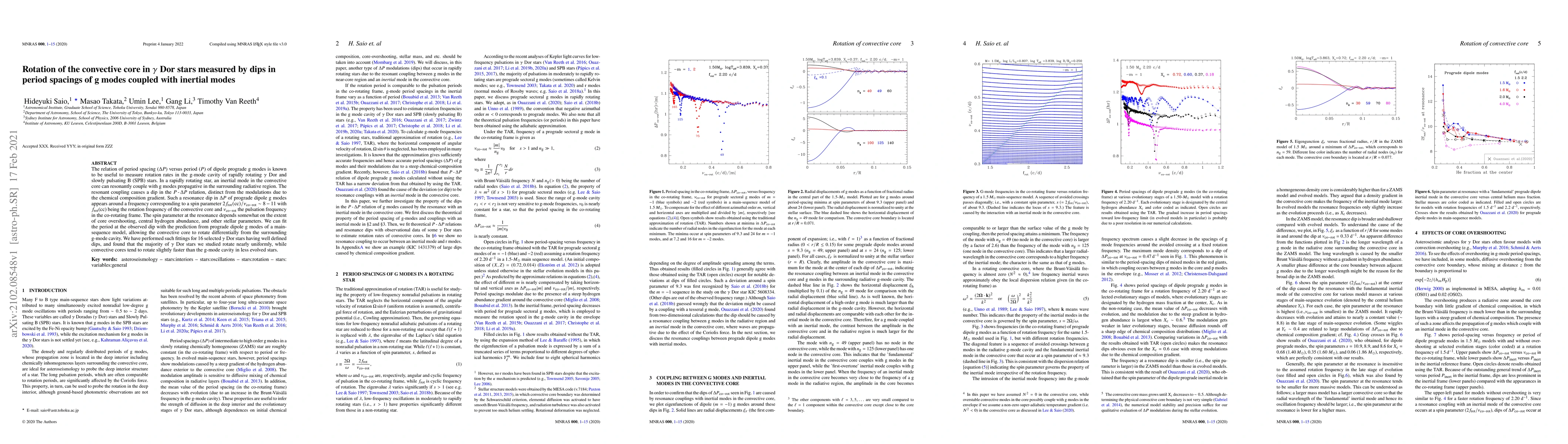 This paper measures the rotation of the convective core in $\gamma$ Dor stars by analyzing dips in the period spacing of g modes coupled with inertial modes. The majority of studied $\gamma$ Dor stars show uniform rotation, with convective cores rotating slightly faster than the surrounding g-mode cavity in less evolved stars.