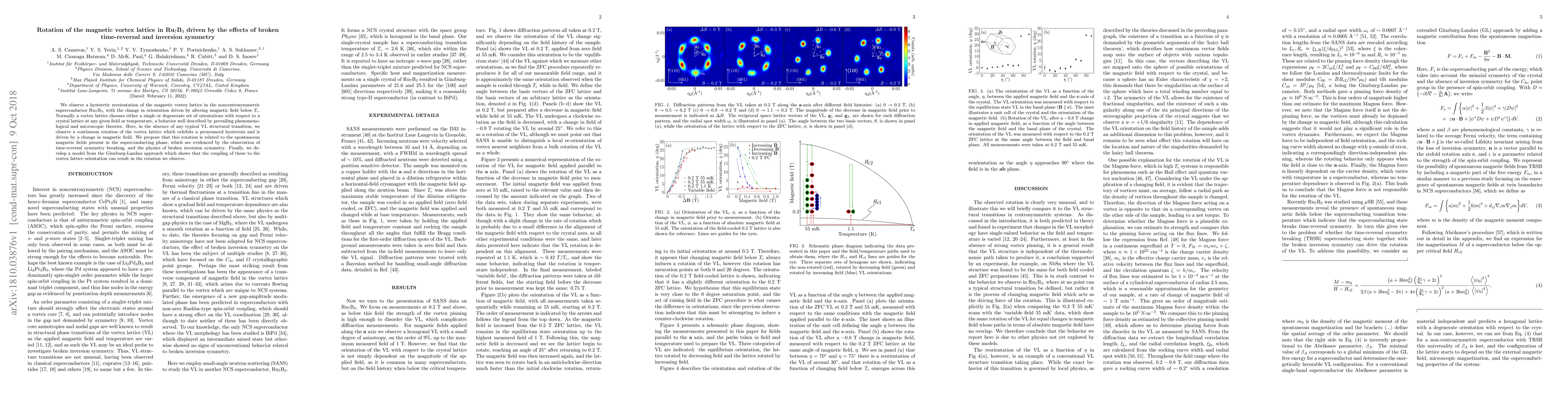We observe a hysteretic reorientation of the magnetic vortex lattice in the noncentrosymmetric superconductor Ru7B3, with the change in orientation driven by altering magnetic field below Tc. Normally a vortex lattice chooses either a single or degenerate set of orientations with respect to a crystal lattice at any given field or temperature, a behavior well described by prevailing phenomenological and microscopic theories. Here, in the absence of any typical VL structural transition, we observe a continuous rotation of the vortex lattice which exhibits a pronounced hysteresis and is driven by a change in magnetic field. We propose that this rotation is related to the spontaneous magnetic fields present in the superconducting phase, which are evidenced by the observation of time-reversal symmetry breaking, and the physics of broken inversion symmetry. Finally, we develop a model from the Ginzburg-Landau approach which shows that the coupling of these to the vortex lattice orientation can result in the rotation we observe.