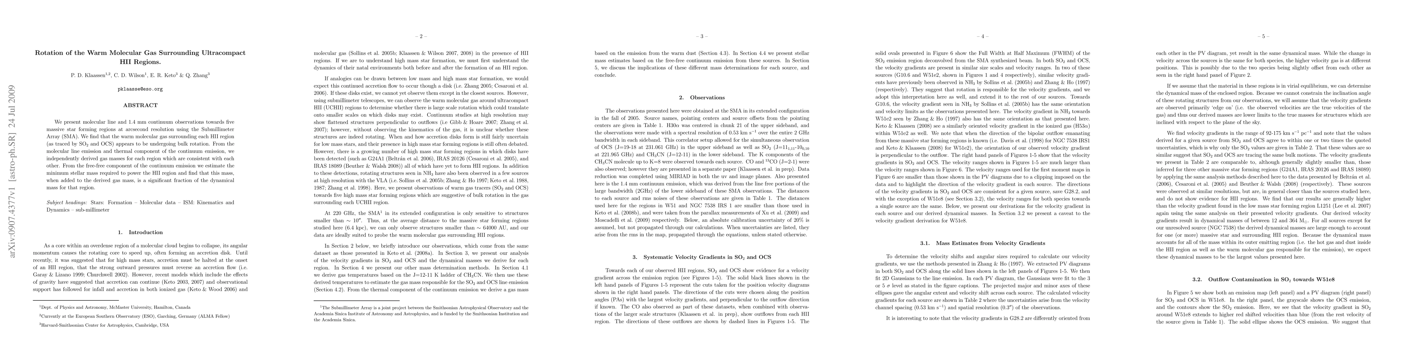 Researchers observed five massive star-forming regions using the Submillimeter Array, finding that the warm molecular gas surrounding each HII region is rotating in bulk. The minimum stellar mass required to power these regions matches a significant fraction of their dynamical mass.