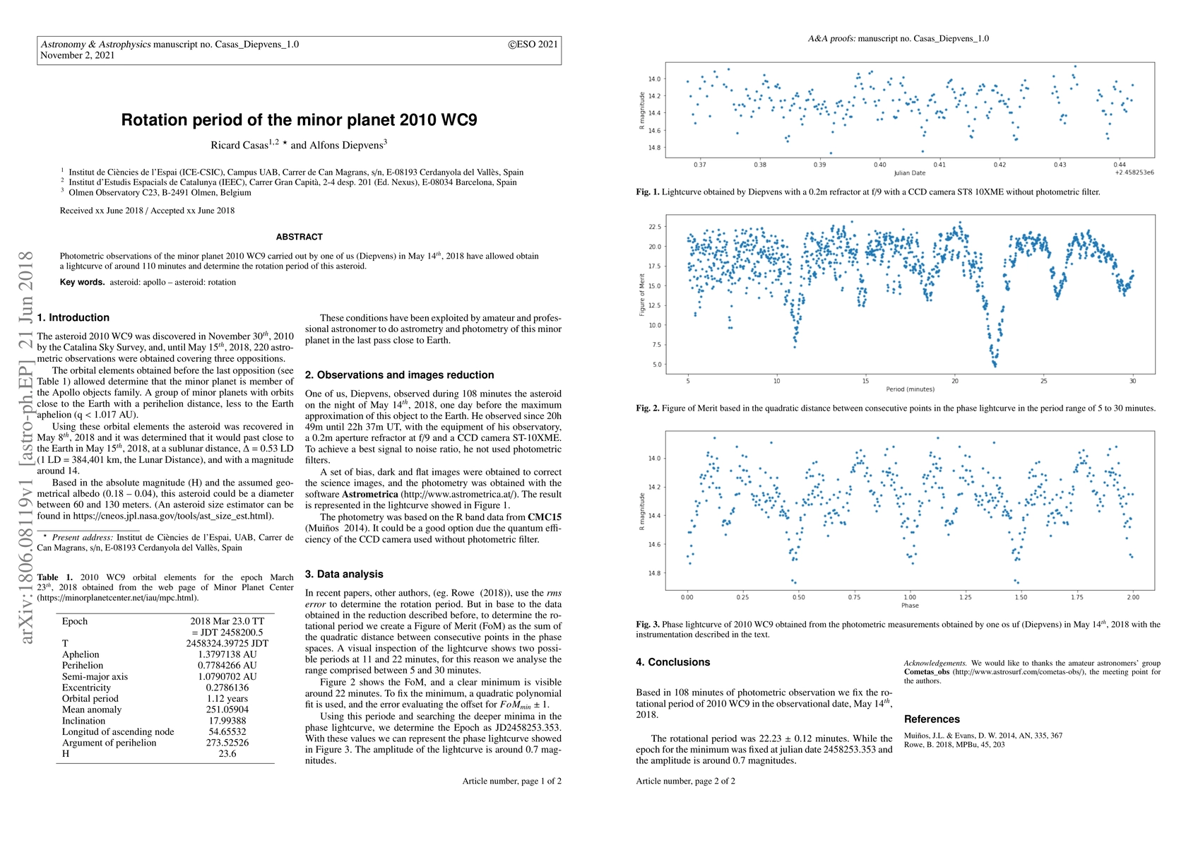 Photometric observations of the minor planet 2010 WC9 carried out by one of us (Diepvens) in May 14$^{th}$, 2018 have allowed obtain a lightcurve of around 110 minutes and determine the rotation period of this asteroid.
