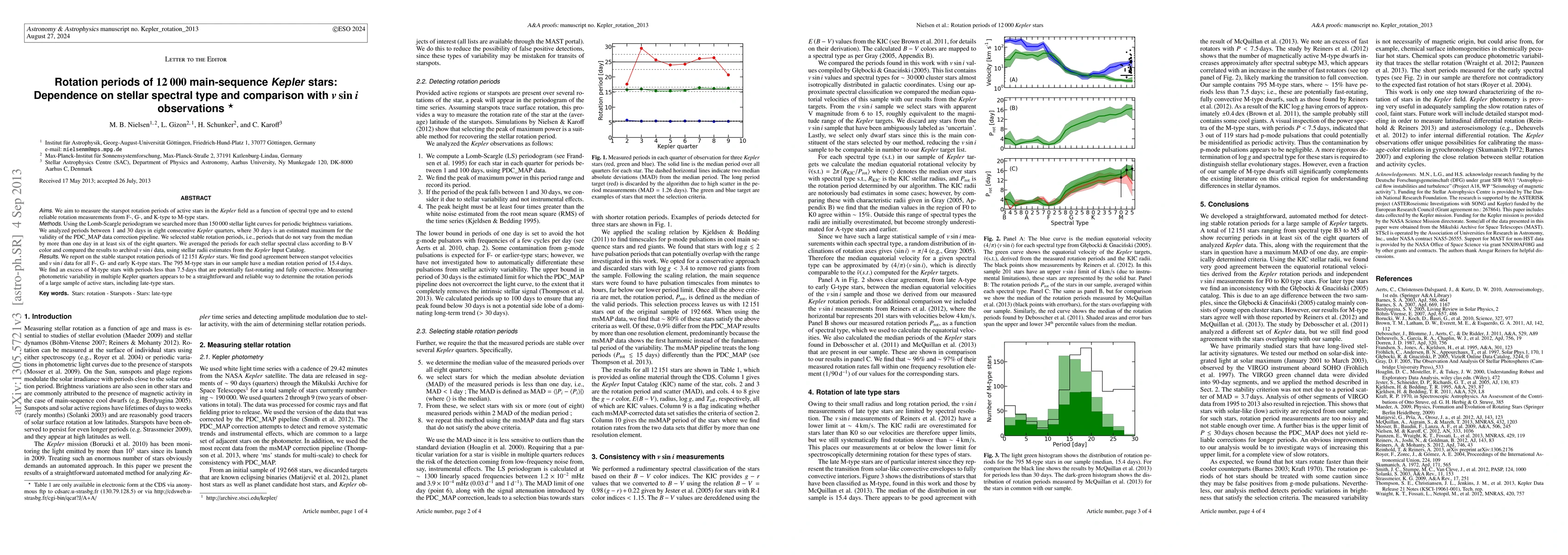This study measures the rotation periods of 12,151 main-sequence Kepler stars, finding stable periods for F-, G-, K-, and M-type stars, with M-type stars showing a median rotation period of 15.4 days and an excess of fast-rotating stars. The results align well with archival vsini data for earlier spectral types.