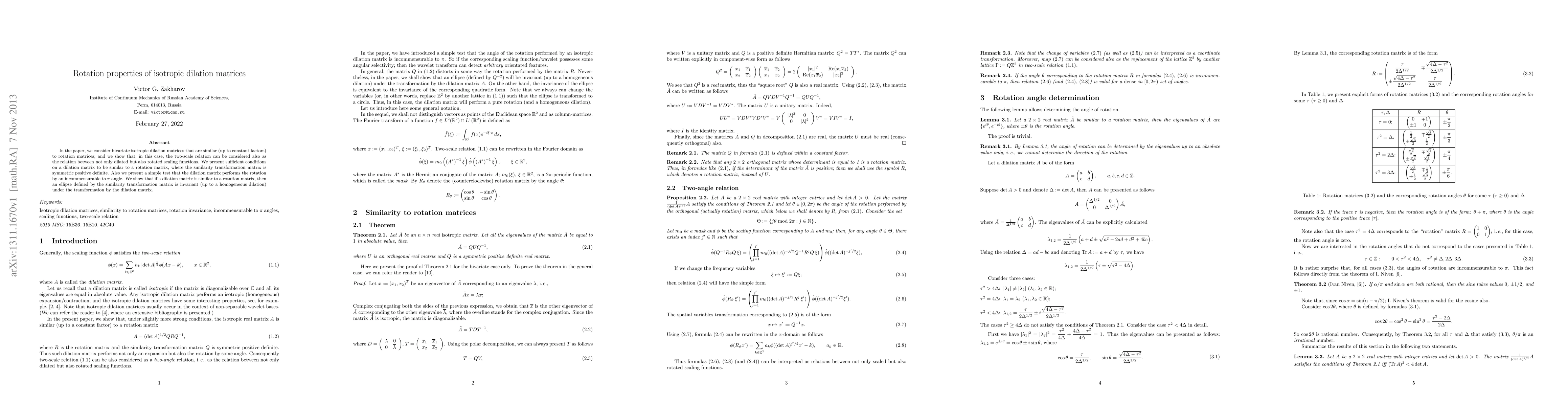 A study on bivariate isotropic dilation matrices shows that those similar to rotation matrices can also rotate scaling functions, leading to invariant ellipses under transformation.