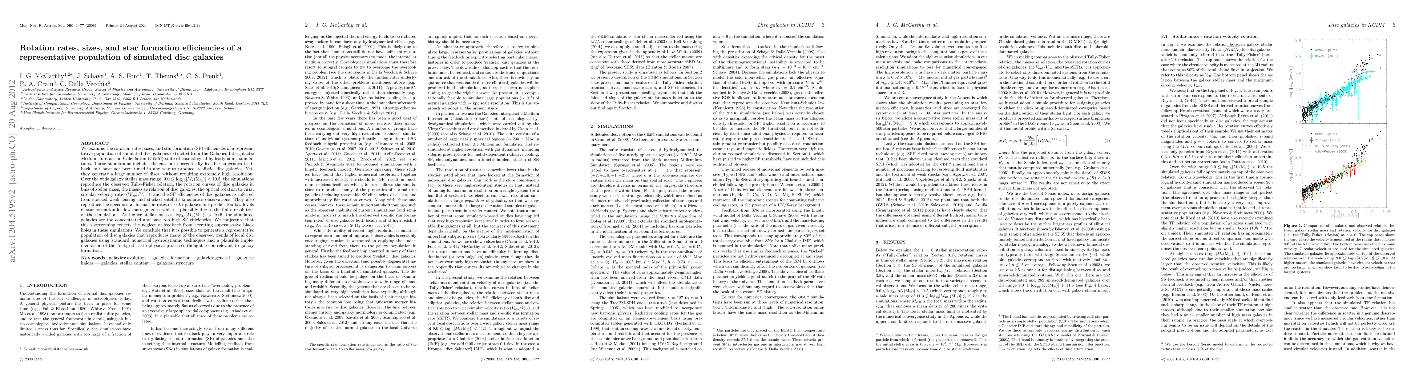 This paper investigates the rotation rates, sizes, and star formation efficiencies of simulated disc galaxies from the GIMIC cosmological simulations, finding that they reproduce many observed trends across a wide stellar mass range. However, the simulations underpredict star formation in low-mass galaxies and overpredict it in high-mass galaxies, likely due to resolution limits and the omission of black hole feedback.