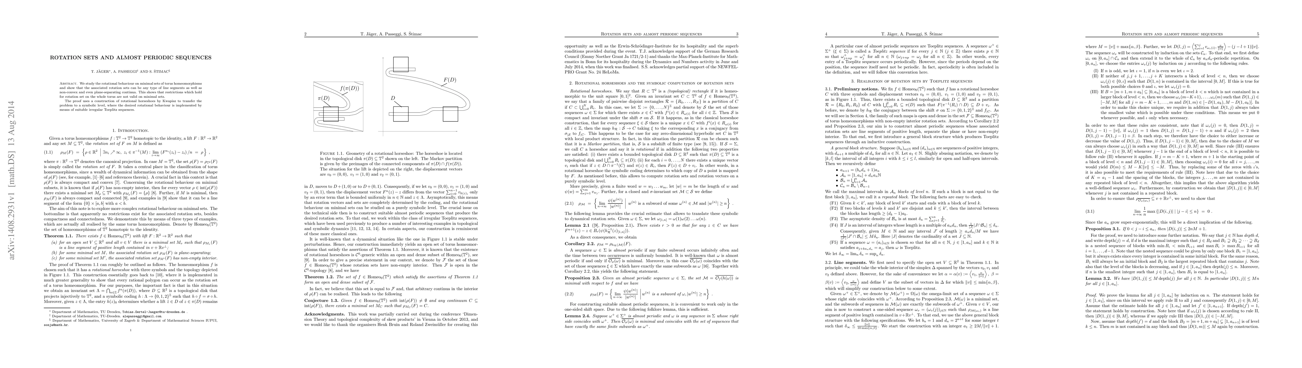 We study the rotational behaviour on minimal sets of torus homeomorphisms and show that the associated rotation sets can be any type of line segments as well as non-convex and even plane-separating continua. This shows that restrictions holding for rotation sets on the whole torus are not valid on minimal sets. The proof uses a construction of rotational horseshoes by Kwapisz to transfer the problem to a symbolic level, where the desired rotational behaviour is implemented by means of suitable irregular Toeplitz sequences.
