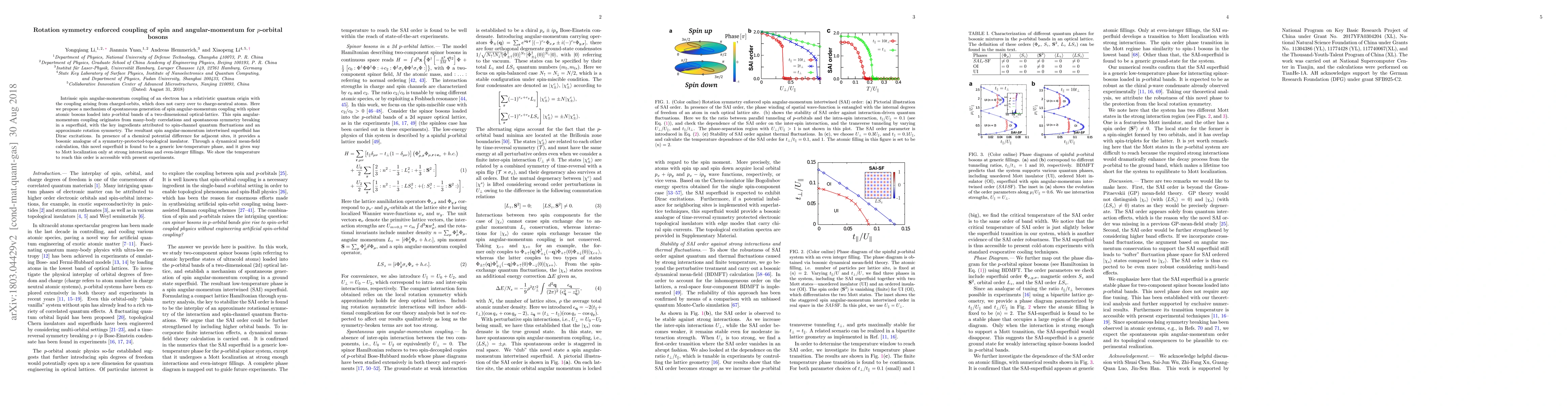 Intrinsic spin angular-momentum coupling of an electron has a relativistic quantum origin with the coupling arising from charged-orbits, which does not carry over to charge-neutral atoms. Here we propose a mechanism of spontaneous generation of spin angular-momentum coupling with spinor atomic bosons loaded into $p$-orbital bands of a two-dimensional optical-lattice. This spin angular-momentum coupling originates from many-body correlations and spontaneous symmetry breaking in a superfluid, with the key ingredients attributed to spin-channel quantum fluctuations and an approximate rotation symmetry. The resultant spin angular-momentum intertwined superfluid has Dirac excitations. In presence of a chemical potential difference for adjacent sites, it provides a bosonic analogue of a symmetry-protected-topological insulator. Through a dynamical mean-field calculation, this novel superfluid is found to be a generic low-temperature phase, and it gives way to Mott localization only at strong interactions and even-integer fillings. We show the temperature to reach this order is accessible with present experiments.