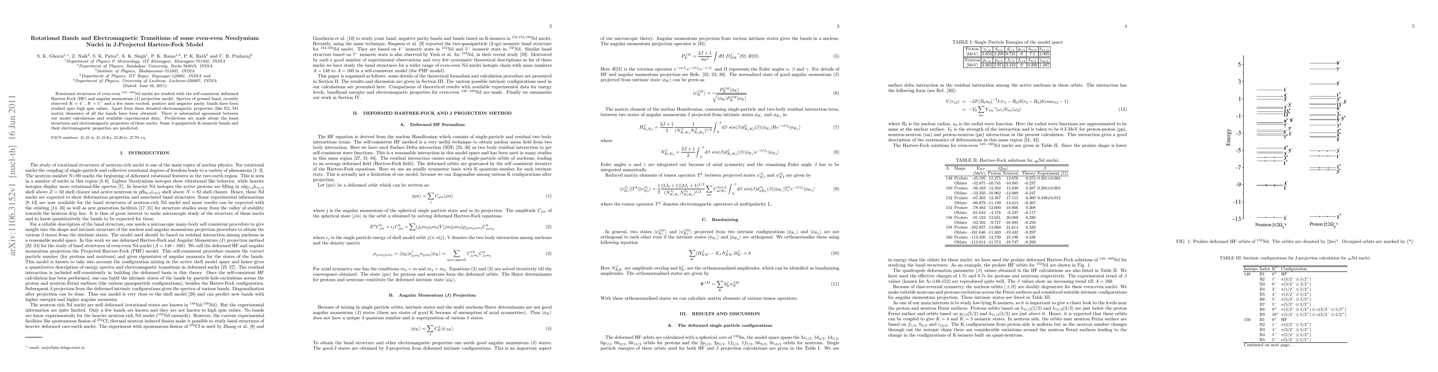 Researchers studied the rotational structures of even-even Neodymium nuclei using a self-consistent deformed Hartree-Fock model, obtaining agreements with experimental data and predicting band structures and electromagnetic properties.