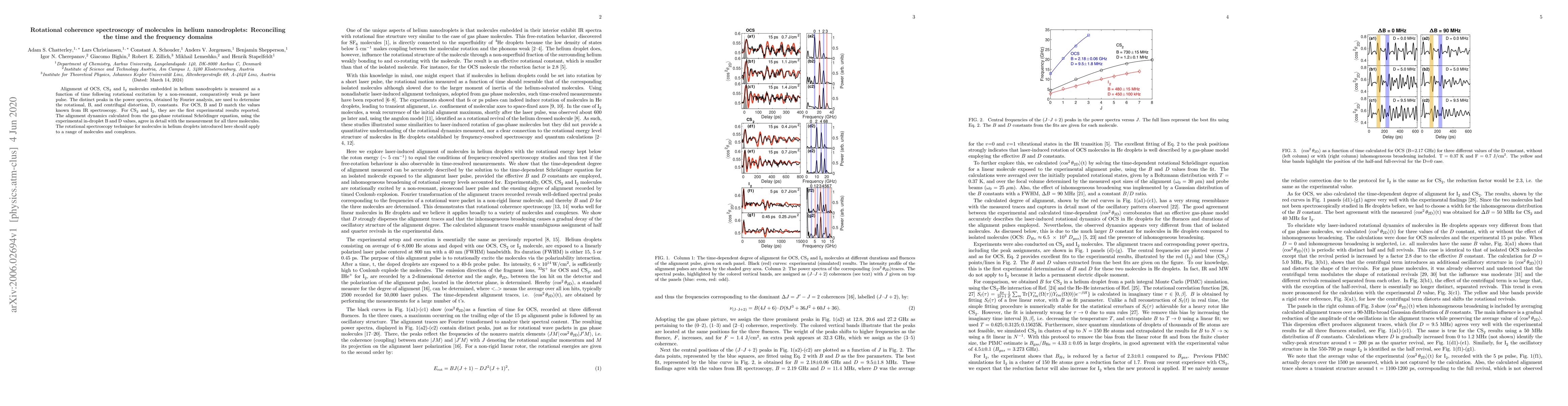 This work distinguishes itself by combining time-resolved measurements with frequency-domain analysis to extract rotational constants, providing a comprehensive understanding of molecular behavior in helium nanodroplets.