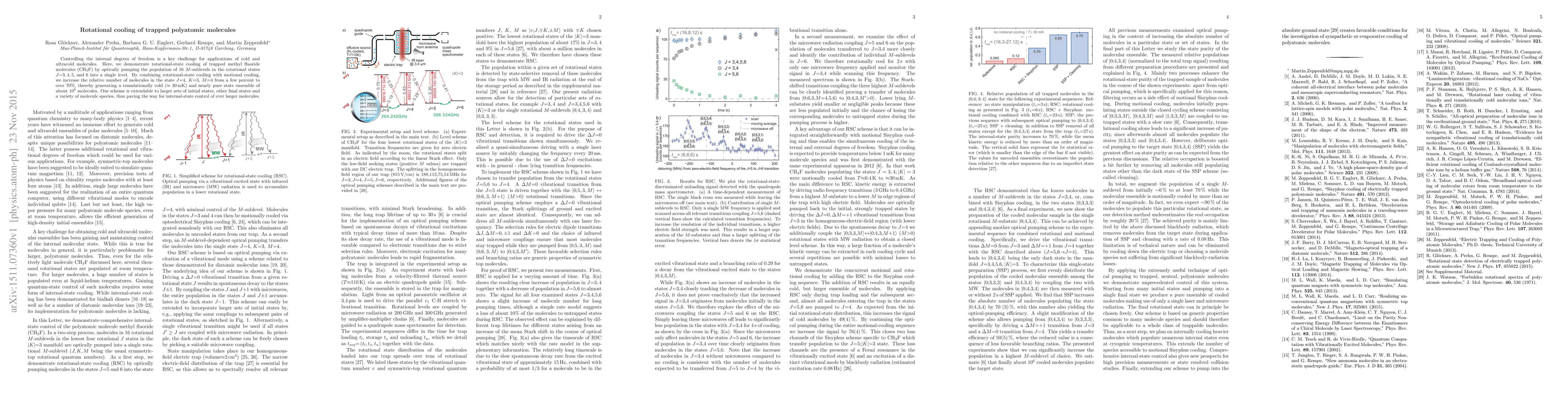 Controlling the internal degrees of freedom is a key challenge for applications of cold and ultracold molecules. Here, we demonstrate rotational-state cooling of trapped methyl fluoride molecules (CH3F) by optically pumping the population of 16 M-sublevels in the rotational states J=3,4,5, and 6 into a single level. By combining rotational-state cooling with motional cooling, we increase the relative number of molecules in the state J=4, K=3, M=4 from a few percent to over 70%, thereby generating a translationally cold (~30mK) and nearly pure state ensemble of about 10^6 molecules. Our scheme is extendable to larger sets of initial states, other final states and a variety of molecule species, thus paving the way for internal-state control of ever larger molecules.