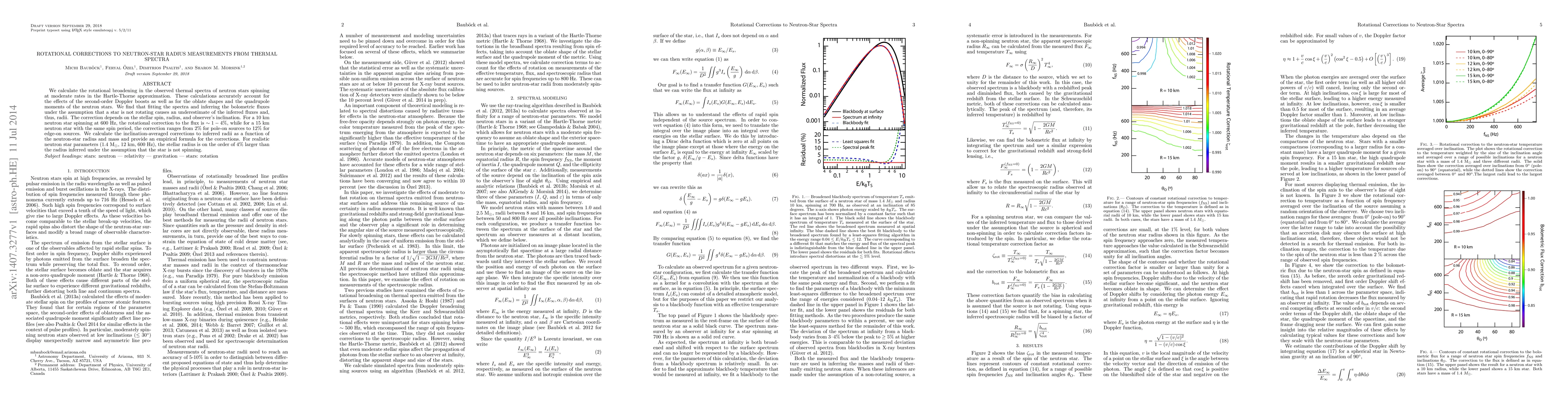 This paper calculates rotational broadening in neutron star thermal spectra using the Hartle-Thorne approximation, revealing that non-rotating assumptions lead to underestimated bolometric fluxes and radii. For a 10 km neutron star spinning at 600 Hz, the flux correction is ~1-4%, while for a 15 km neutron star, corrections range from 2% to 12% depending on the observer's inclination, resulting in radii up to 4% larger than inferred non-rotating models.