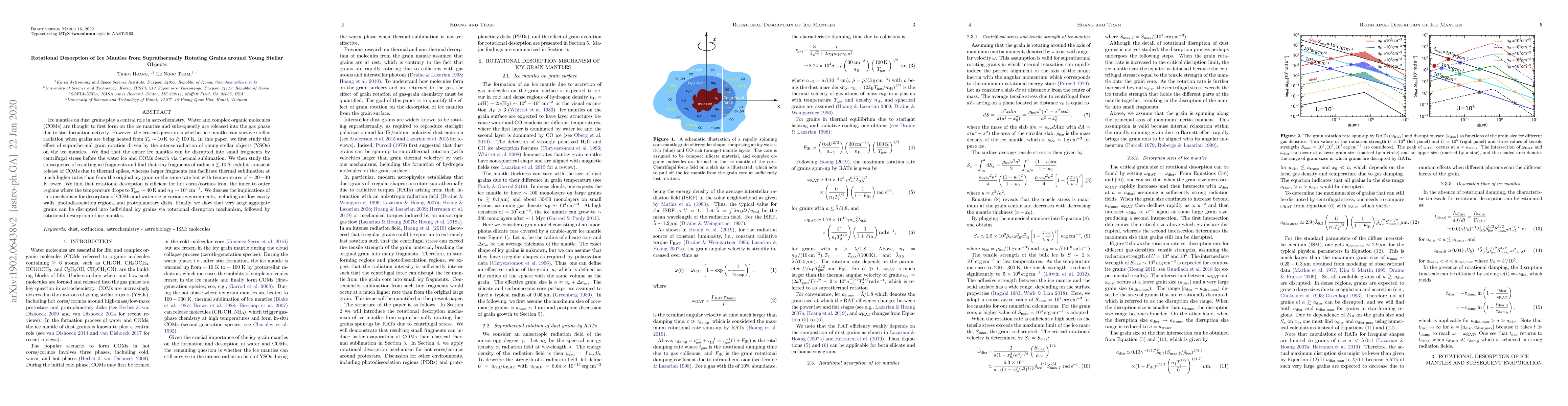 This paper investigates how suprathermal rotation of dust grains around young stellar objects disrupts ice mantles, leading to the desorption of water and complex organic molecules. It finds that rotational desorption can efficiently release these molecules in environments like hot cores and protoplanetary disks, impacting astrochemical processes.