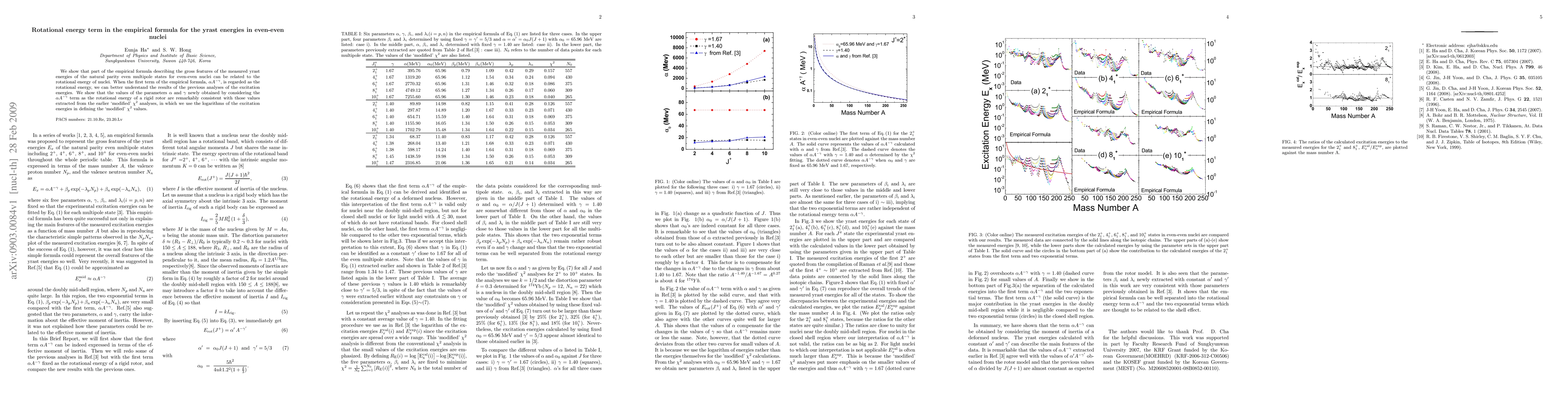 We show that part of the empirical formula describing the gross features of the measured yrast energies of the natural parity even multipole states for even-even nuclei can be related to the rotational energy of nuclei. When the first term of the empirical formula, $\alpha A^{-\gamma}$, is regarded as the otational energy, we can better understand the results of the previous analyses of the excitation energies. We show that the values of the parameters $\alpha$ and $\gamma$ newly obtained by considering the $\alpha A^{-\gamma}$ term as the rotational energy of a rigid rotor are remarkably consistent with those values extracted from the earlier `modified' $\chi^2$ analyses, in which we use the logarithms of the excitation energies in defining the `modified' $\chi^2$ values.
