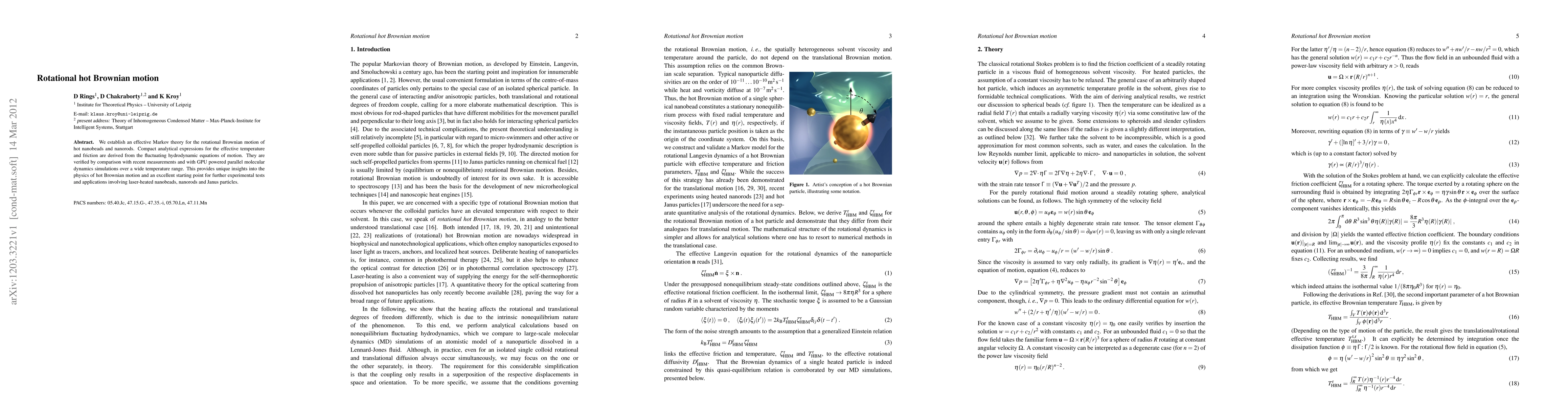 We establish an effective Markov theory for the rotational Brownian motion of hot nanobeads and nanorods. Compact analytical expressions for the effective temperature and friction are derived from the fluctuating hydrodynamic equations of motion. They are verified by comparison with recent measurements and with GPU powered parallel molecular dynamics simulations over a wide temperature range. This provides unique insights into the physics of hot Brownian motion and an excellent starting point for further experimental tests and applications involving laser-heated nanobeads, nanorods and Janus particles.