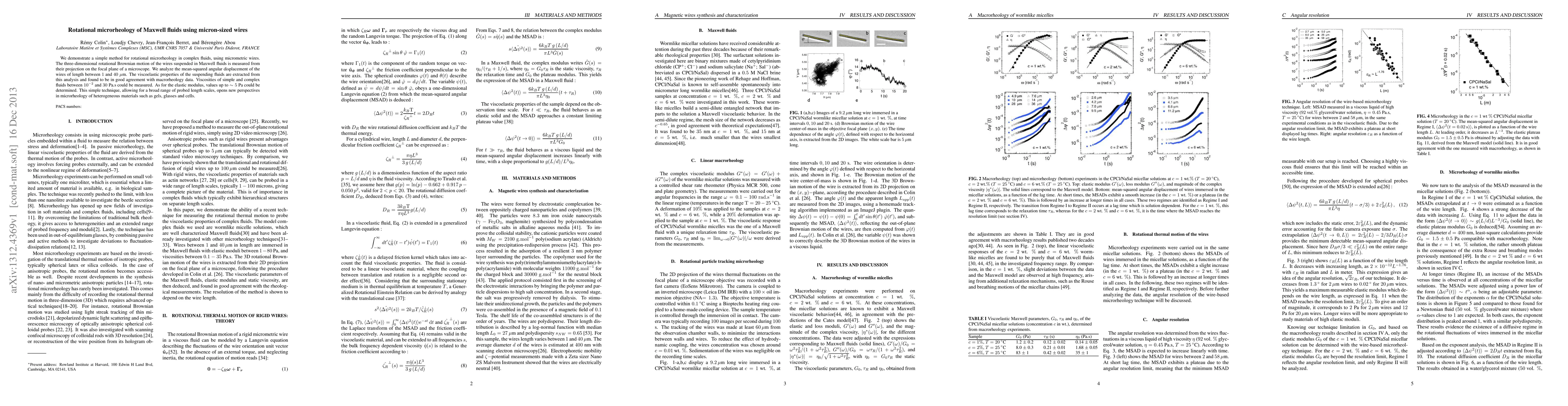 This paper presents a novel rotational microrheology method using micrometric wires to measure the viscoelastic properties of Maxwell fluids, achieving good agreement with macrorheology data. The technique allows for the measurement of viscosities and elastic moduli across a broad range of length scales, offering new insights into the rheology of heterogeneous materials.