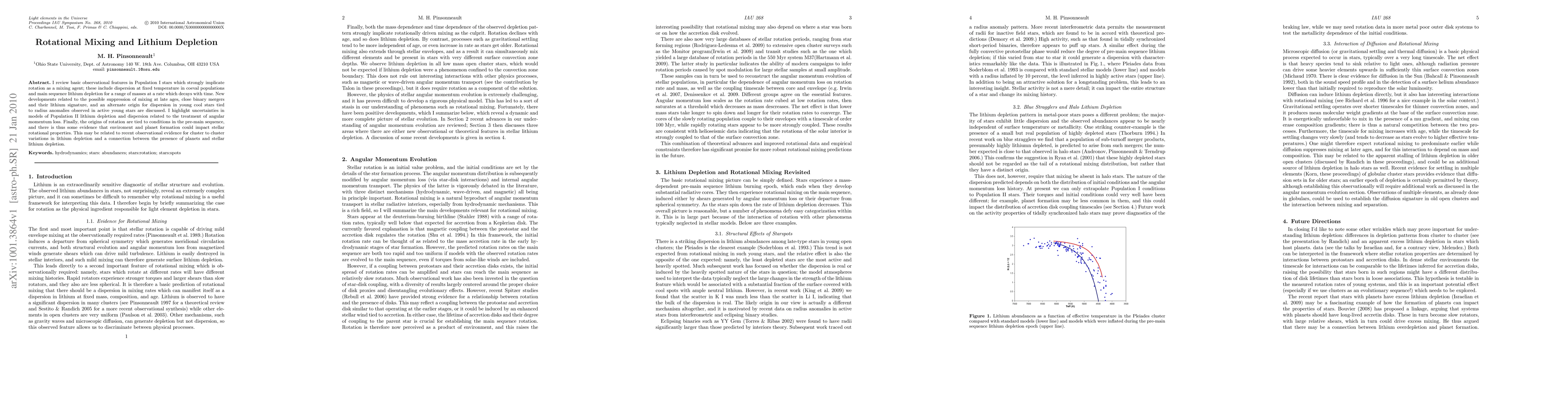 I review basic observational features in Population I stars which strongly implicate rotation as a mixing agent; these include dispersion at fixed temperature in coeval populations and main sequence lithium depletion for a range of masses at a rate which decays with time. New developments related to the possible suppression of mixing at late ages, close binary mergers and their lithium signature, and an alternate origin for dispersion in young cool stars tied to radius anomalies observed in active young stars are discussed. I highlight uncertainties in models of Population II lithium depletion and dispersion related to the treatment of angular momentum loss. Finally, the origins of rotation are tied to conditions in the pre-main sequence, and there is thus some evidence that enviroment and planet formation could impact stellar rotational properties. This may be related to recent observational evidence for cluster to cluster variations in lithium depletion and a connection between the presence of planets and stellar lithium depletion.