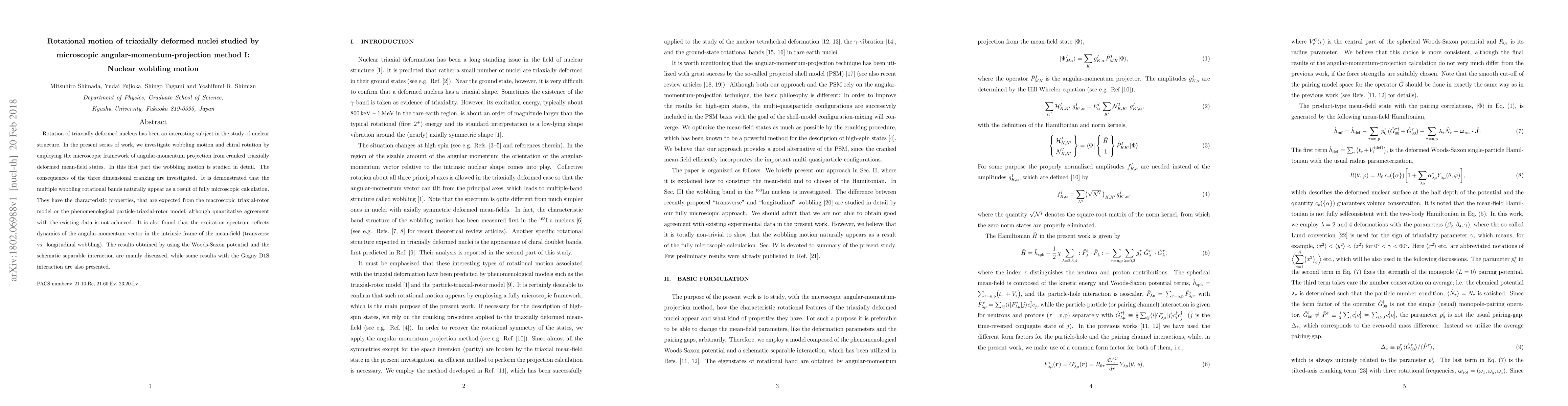 This paper investigates the wobbling motion in triaxially deformed nuclei using a microscopic angular-momentum projection method, revealing multiple rotational bands and dynamics of the angular-momentum vector in the intrinsic frame, though quantitative agreement with existing data remains elusive. Results are primarily discussed using the Woods-Saxon potential and schematic separable interaction.