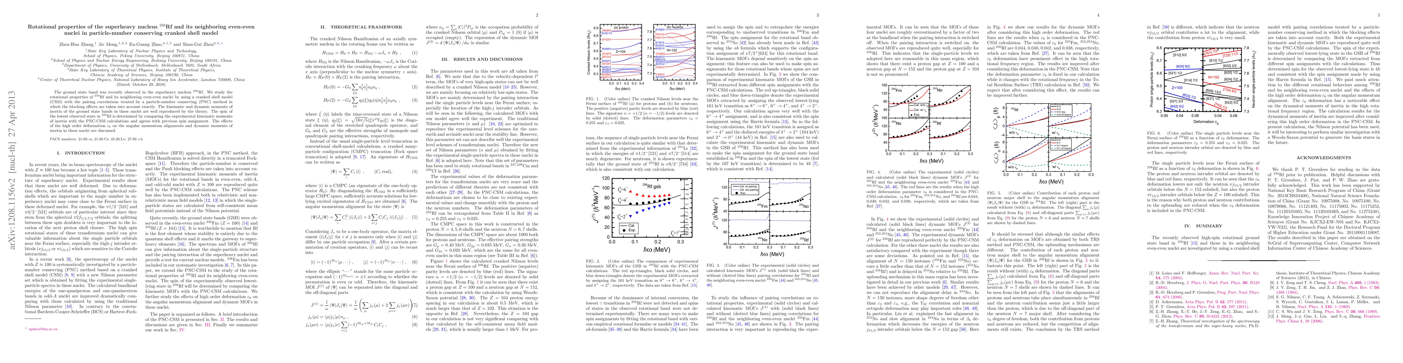 This paper investigates the rotational properties of the superheavy nucleus 256Rf and its neighboring even-even nuclei using a particle-number conserving cranked shell model. The study confirms the spin of the lowest observed state in 256Rf and discusses the impact of high-order deformation on angular momentum alignments.