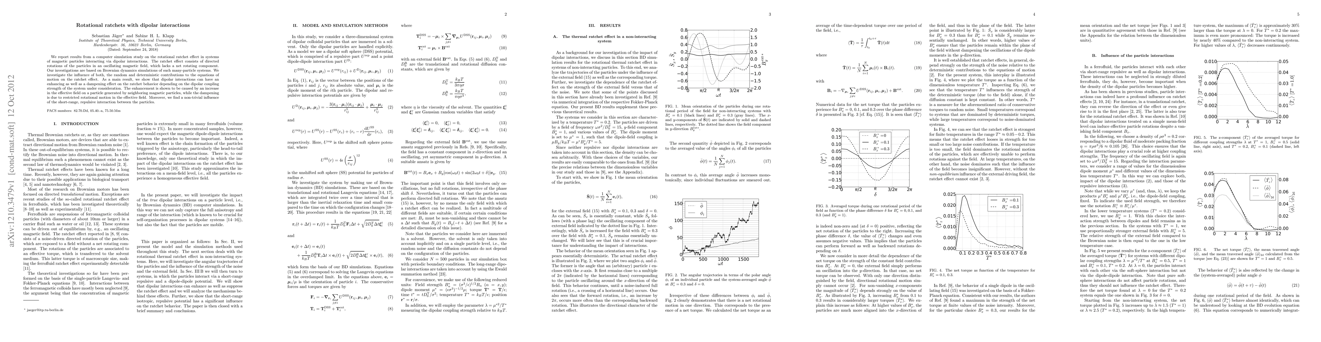 This study, through computer simulations, explores the rotational ratchet effect in magnetic particle systems with dipolar interactions. It reveals that these interactions can either boost or hinder the ratchet behavior, depending on the dipolar coupling strength, due to changes in effective fields and restricted rotational motion. Short-range, repulsive interactions between particles also significantly impact the system.