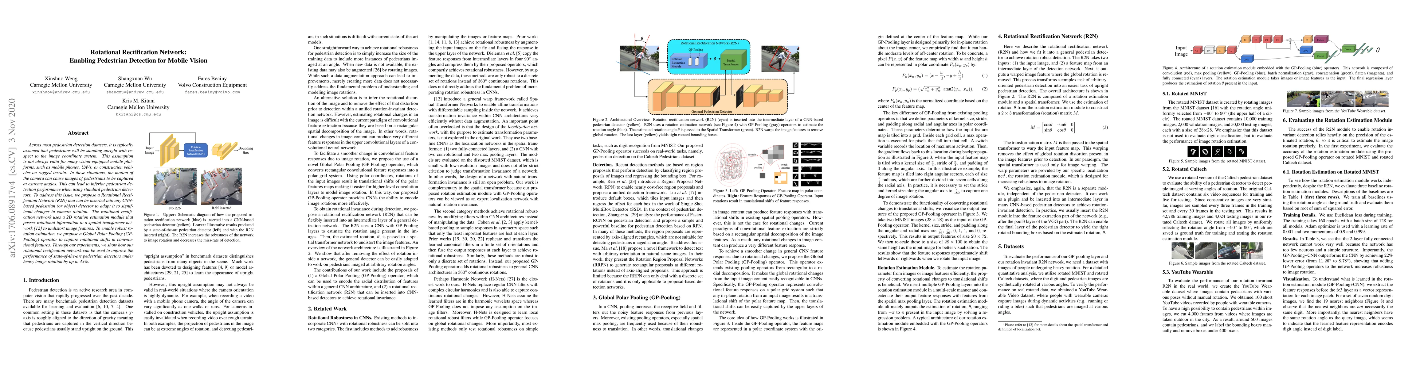 The paper proposes a Rotational Rectification Network (R2N) to enhance pedestrian detection in mobile vision systems by addressing the challenges posed by significant camera rotations. The R2N incorporates a Global Polar Pooling operator and a spatial transformer network to improve detection performance under extreme image rotations.