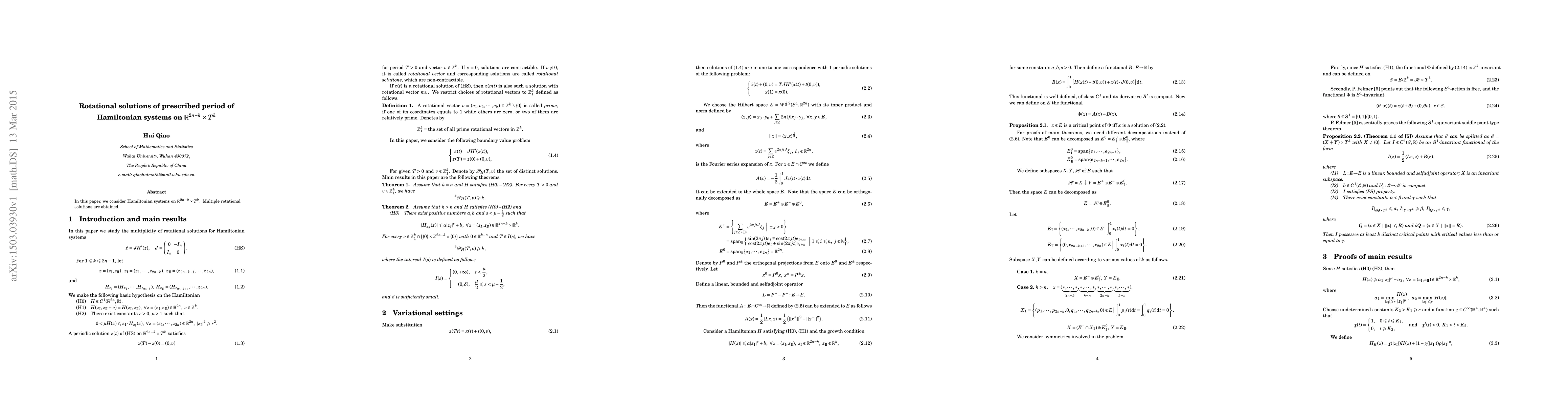 In this paper, we consider Hamiltonian systems on $\R^{2n-k}\ts T^k$. Multiple rotational solutions are obtained.