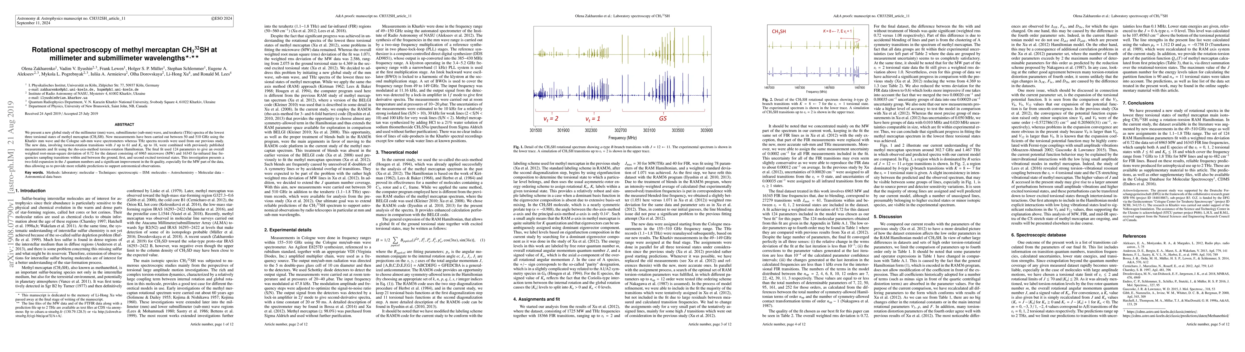 Researchers studied the rotational spectroscopy of methyl mercaptan at millimeter, submillimeter, and terahertz wavelengths, collecting new data and combining it with previous measurements to improve fit quality and provide more accurate predictions for astronomical observations.