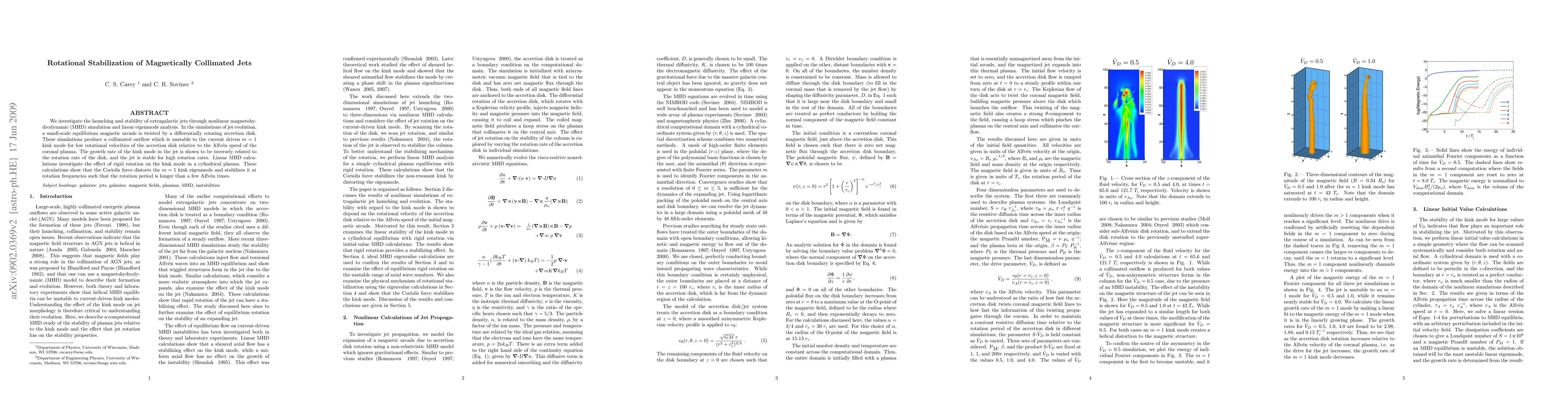 Researchers simulated the launching and stability of extragalactic jets using nonlinear magnetohydrodynamic simulations, finding that high rotation rates stabilize the jets against instability.