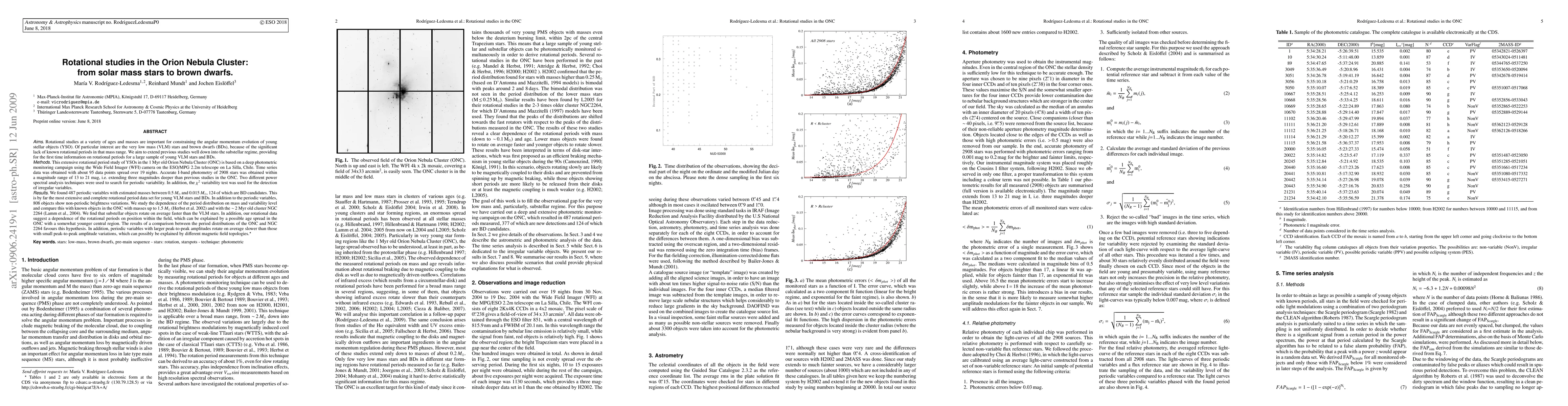 This study provides extensive rotational period data for young very low mass stars and brown dwarfs in the Orion Nebula Cluster, revealing faster rotation in substellar objects compared to VLM stars. The research, based on deep photometric monitoring, suggests an age spread and different magnetic field topologies may influence rotational periods.