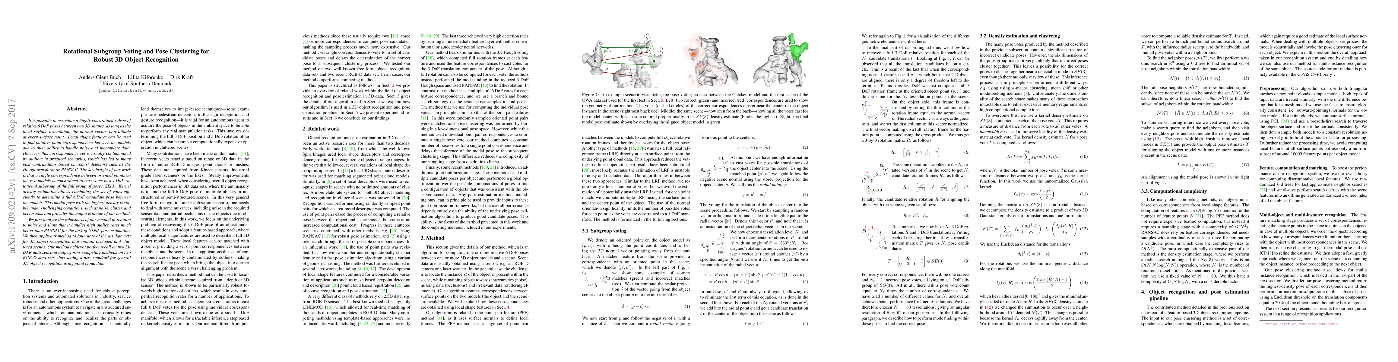 Researchers developed a method for robust 3D object recognition that uses rotational subgroup voting and pose clustering to handle noisy data, achieving perfect recall on two LIDAR datasets and outperforming competitors on two RGB-D datasets.