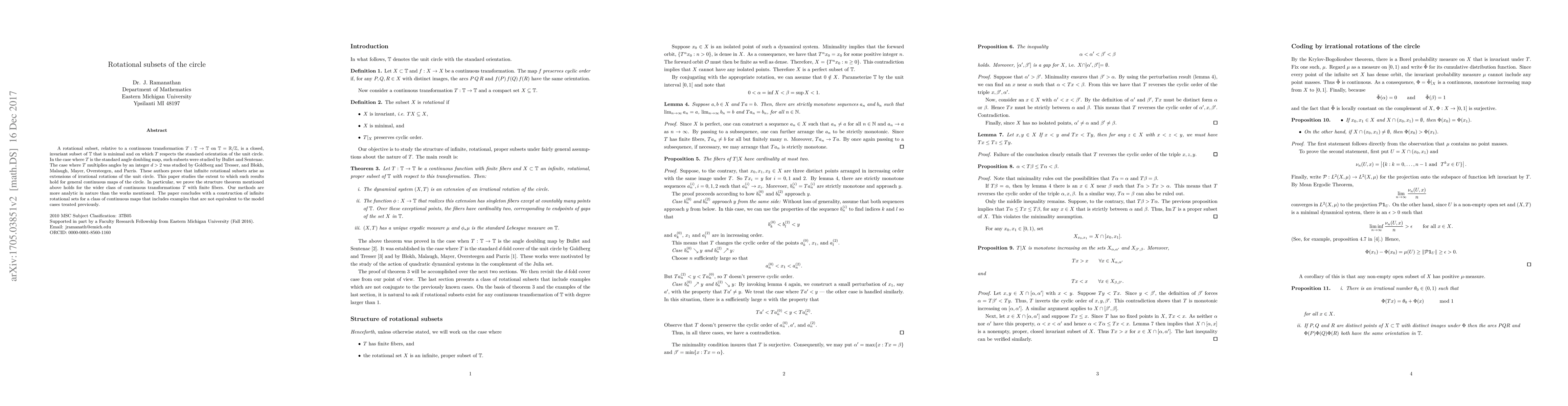 This paper studies rotational subsets of the unit circle under continuous transformations with finite fibers, proving that these subsets arise as extensions of irrational rotations. The authors' analytic methods provide a broader perspective compared to previous studies on specific transformations.