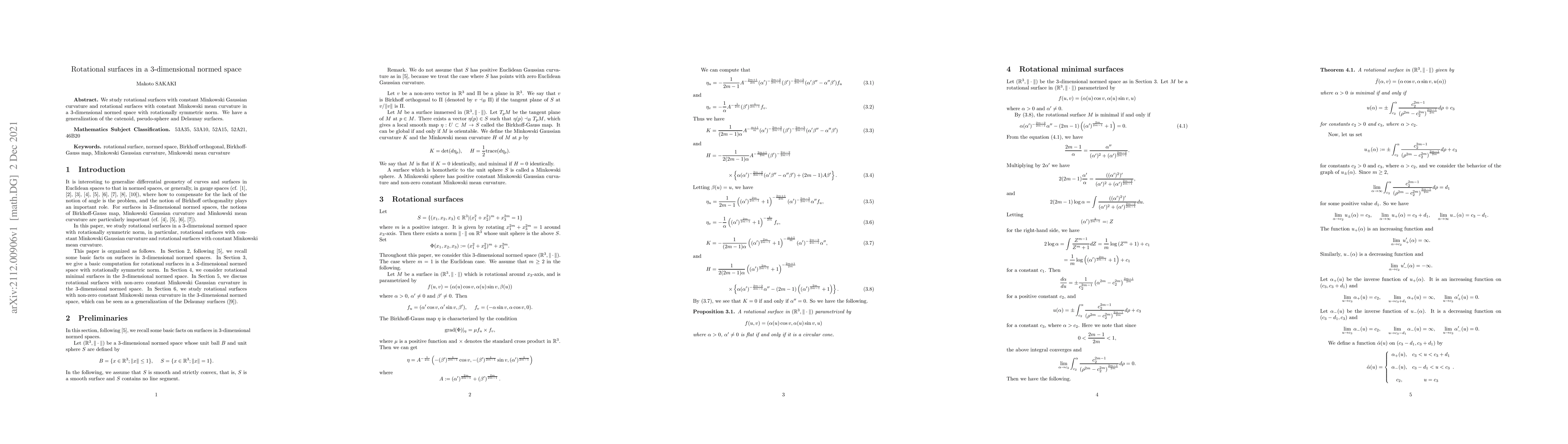Researchers studied rotational surfaces in 3D normed spaces with specific curvature properties, generalizing well-known shapes like the catenoid and pseudo-sphere.