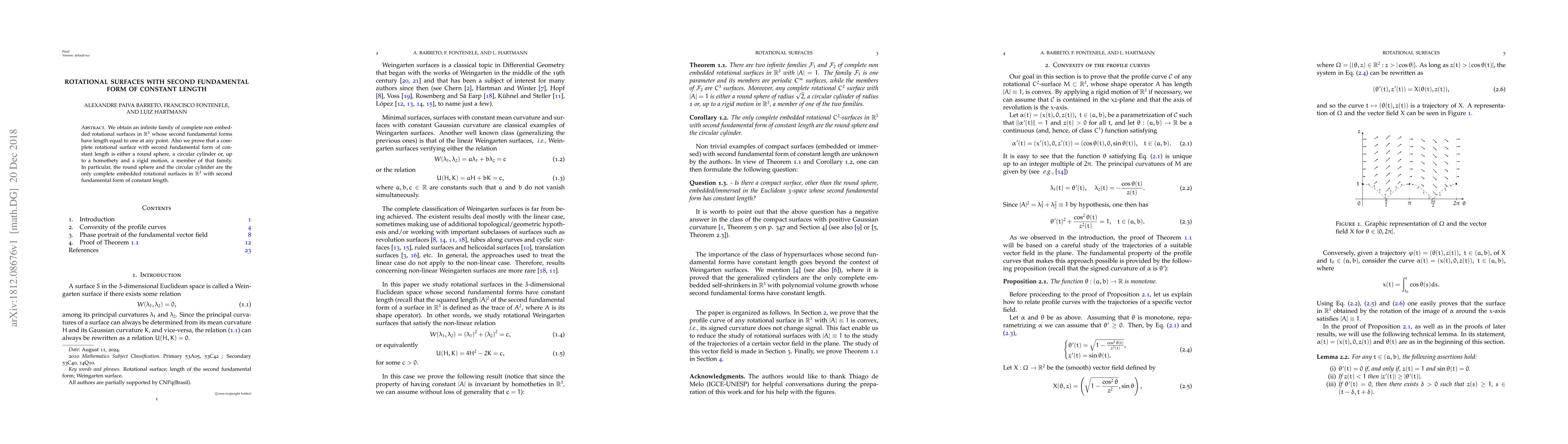 This paper identifies an infinite family of complete non-embedded rotational surfaces in $\mathbb R^3$ with a second fundamental form of constant length. It also proves that any complete rotational surface with this property is either a round sphere, a circular cylinder, or a member of the identified family.