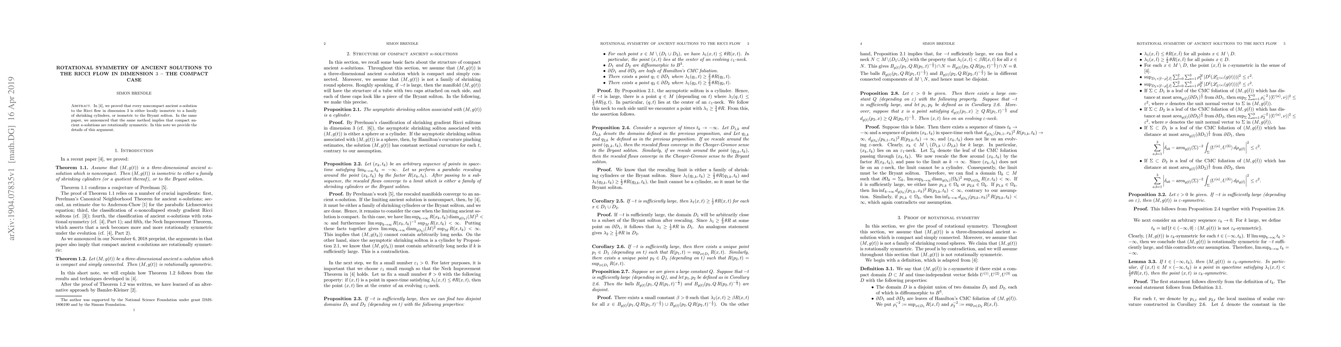 In [4], we proved that every noncompact ancient $\kappa$-solution to the Ricci flow in dimension $3$ is either locally isometric to a family of shrinking cylinders, or isometric to the Bryant soliton. In the same paper, we announced that the same method implies that compact ancient $\kappa$-solutions are rotationally symmetric. In this note we provide the details of this argument.