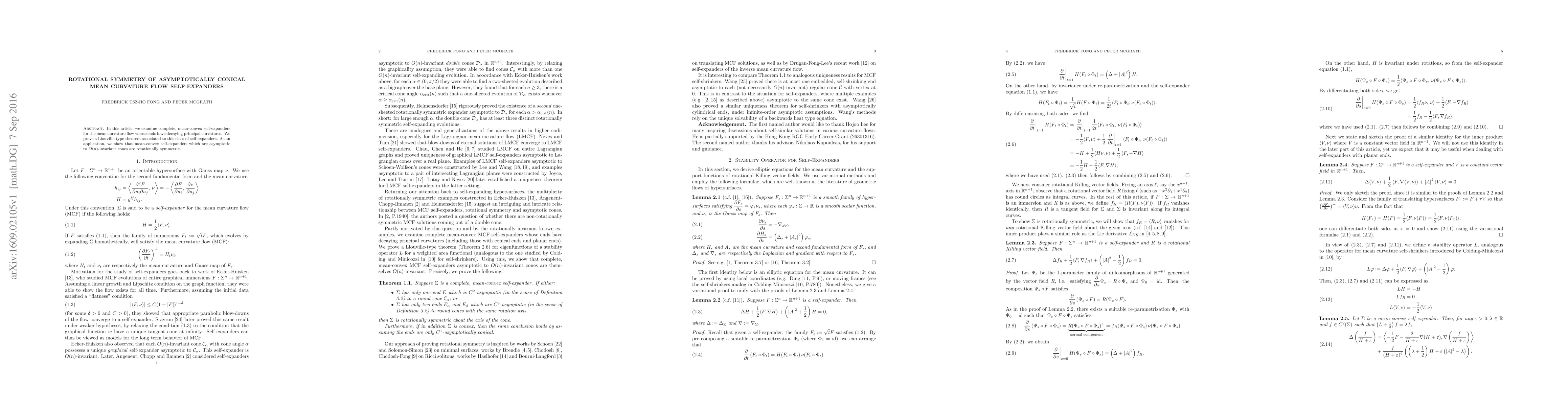 This paper proves a Liouville-type theorem for complete, mean-convex self-expanders under mean curvature flow with decaying principal curvatures, and demonstrates that such self-expanders asymptotic to $O(n)$-invariant cones are rotationally symmetric.