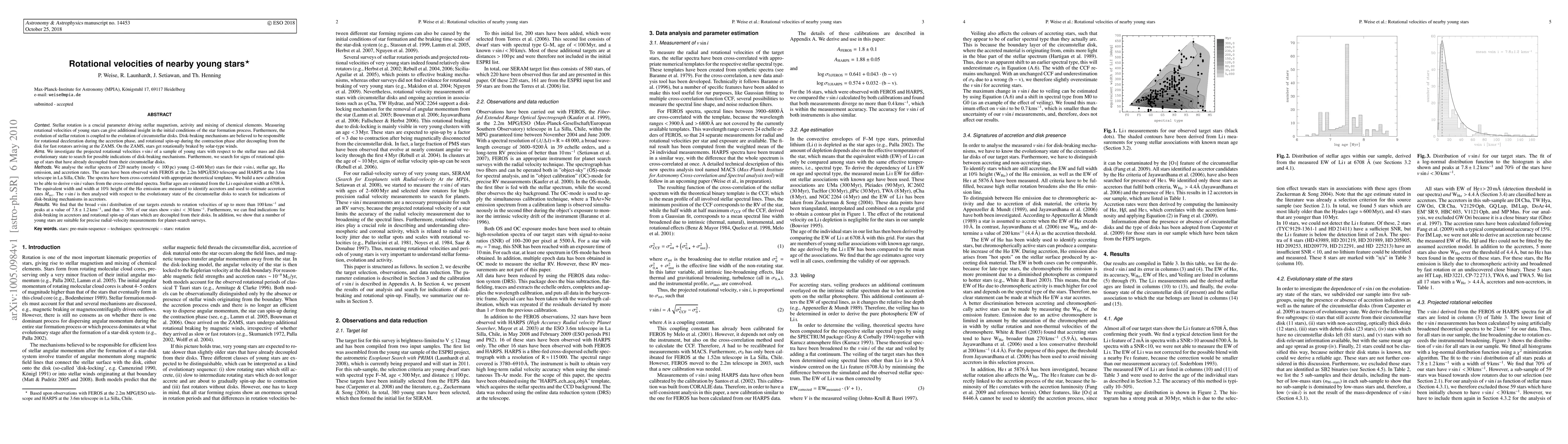 This study investigates rotational velocities of young stars, revealing a broad distribution with some reaching up to 100 km/s, and finding indications for disk-braking mechanisms in accretors.