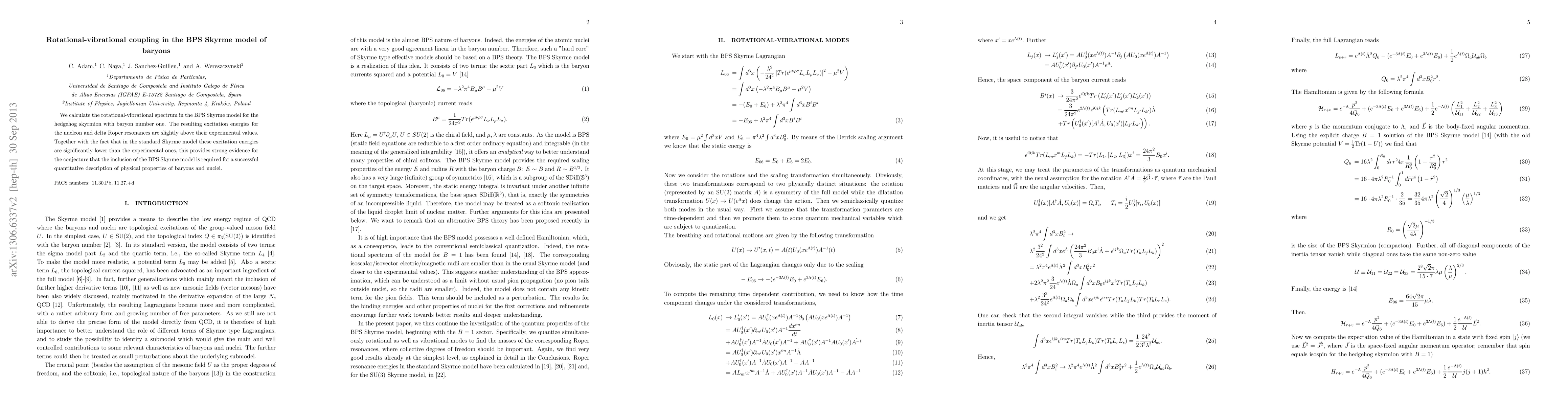 The BPS Skyrme model predicts slightly higher rotational-vibrational excitation energies for nucleon and delta Roper resonances compared to experiments, suggesting its necessity for accurate baryon and nuclear property descriptions. The standard Skyrme model's lower excitation energies further support this conjecture.