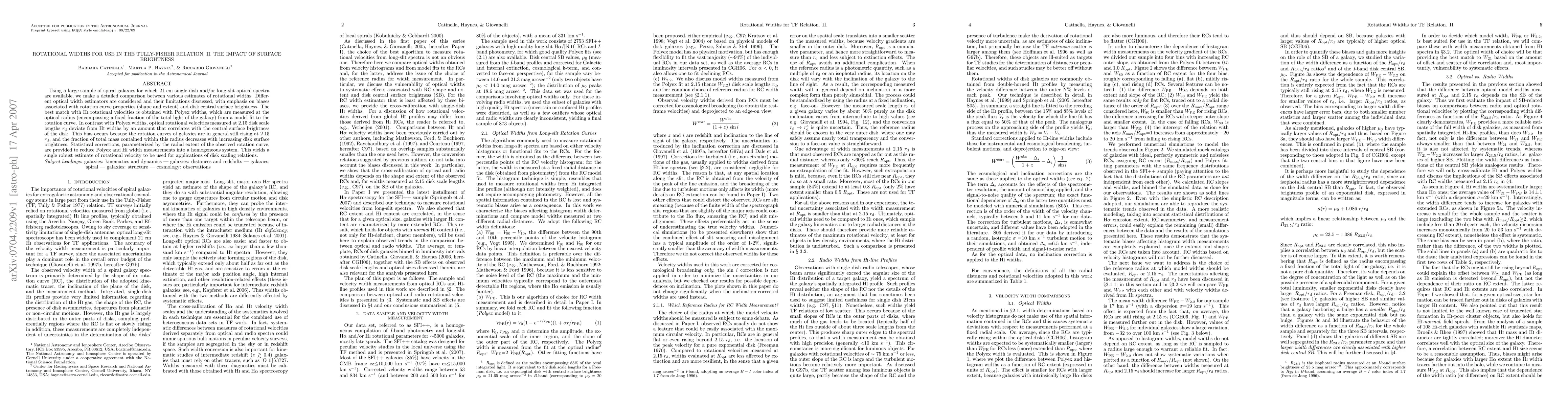 This paper investigates the impact of surface brightness on rotational widths in spiral galaxies, comparing various optical width estimators. Polyex widths, measured at the optical radius, provide the best match to HI rotational velocities, while optical widths at 2.15 disk scale lengths are biased by central surface brightness due to incomplete rotation curves. Statistical corrections are proposed to harmonize these measurements for use in disk scaling relations.
