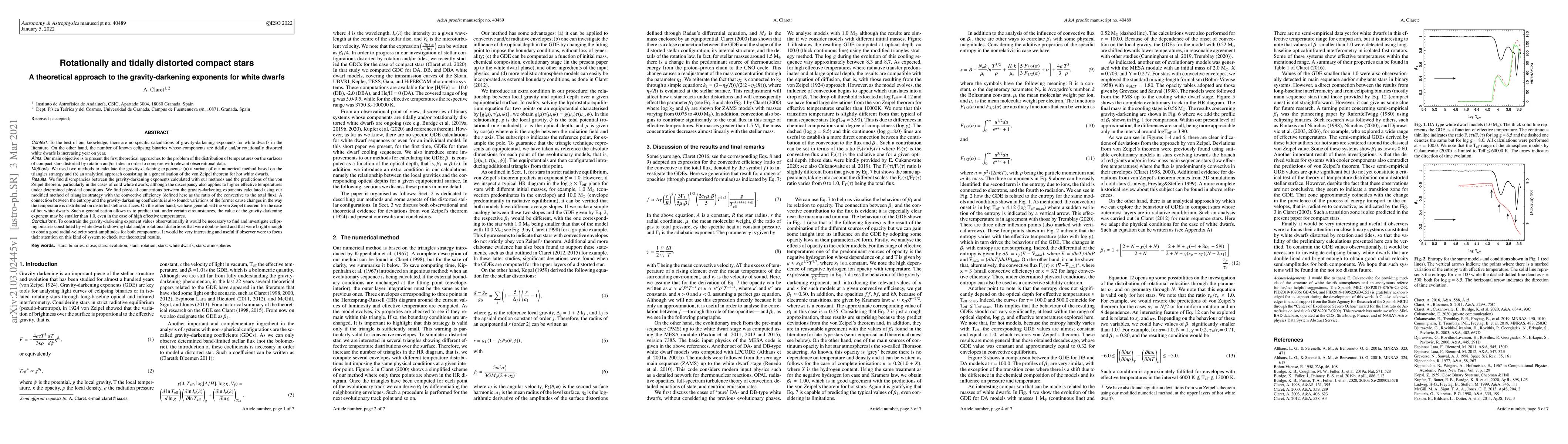 To the best of our knowledge, there are no specific calculations of gravity-darkening exponents for white dwarfs in the literature. On the other hand, the number of known eclipsing binaries whose components are tidally and/or rotationally distorted white dwarfs is increasing year on year. Our main objective is to present the first theoretical approaches to the problem of the distribution of temperatures on the surfaces of compact stars distorted by rotation and/or tides in order to compare with relevant observational data. We find discrepancies between the gravity-darkening exponents calculated with our methods and the predictions of the von Zeipel theorem, particularly in the cases of cold white dwarfs; although the discrepancy also applies to higher effective temperatures under determined physical conditions. We find physical connections between the gravity-darkening exponents calculated using our modified method of triangles strategy with the convective efficiency (defined here as the ratio of the convective to the total flux). A connection between the entropy and the gravity-darkening coefficients is also found: variations of the former cause changes in the way the temperature is distributed on distorted stellar surfaces. On the other hand, we have generalised the von Zeipel theorem for the case of hot white dwarfs. Such a generalisation allows us to predict that, under certain circumstances, the value of the gravity-darkening exponent may be smaller than 1.0, even in the case of high effective temperatures.