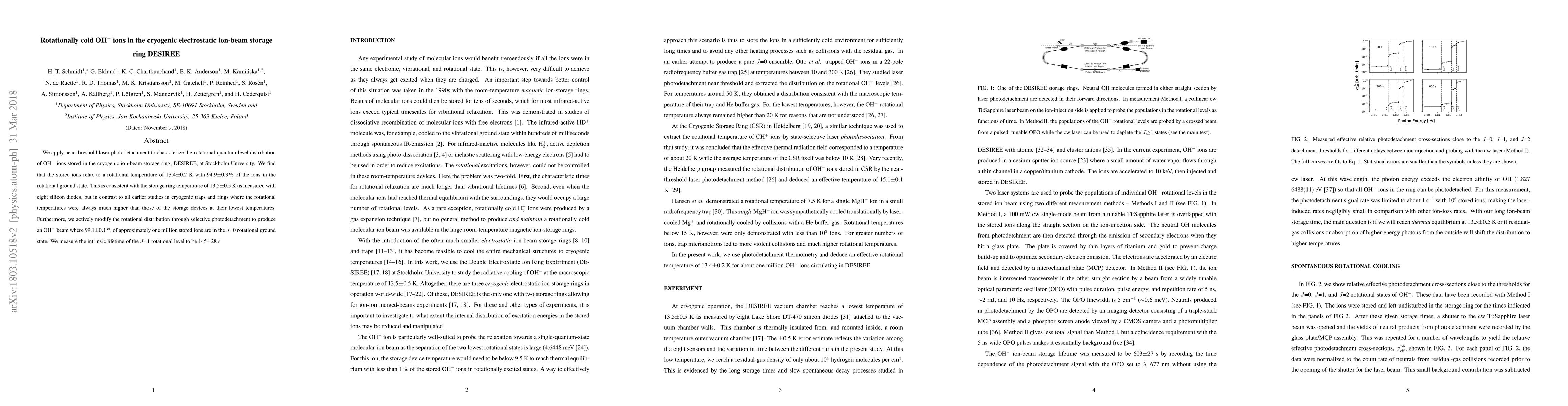 We apply near-threshold laser photodetachment to characterize the rotational quantum level distribution of OH$^-$ ions stored in the cryogenic ion-beam storage ring, DESIREE, at Stockholm University. We find that the stored ions relax to a rotational temperature of 13.4$\pm$0.2 K with 94.9$\pm$0.3 % of the ions in the rotational ground state. This is consistent with the storage ring temperature of 13.5$\pm$0.5 K as measured with eight silicon diodes, but in contrast to all earlier studies in cryogenic traps and rings where the rotational temperatures were always much higher than those of the storage devices at their lowest temperatures. Furthermore, we actively modify the rotational distribution through selective photodetachment to produce an OH$^-$ beam where 99.1$\pm$0.1 % of approximately one million stored ions are in the $J$=0 rotational ground state.