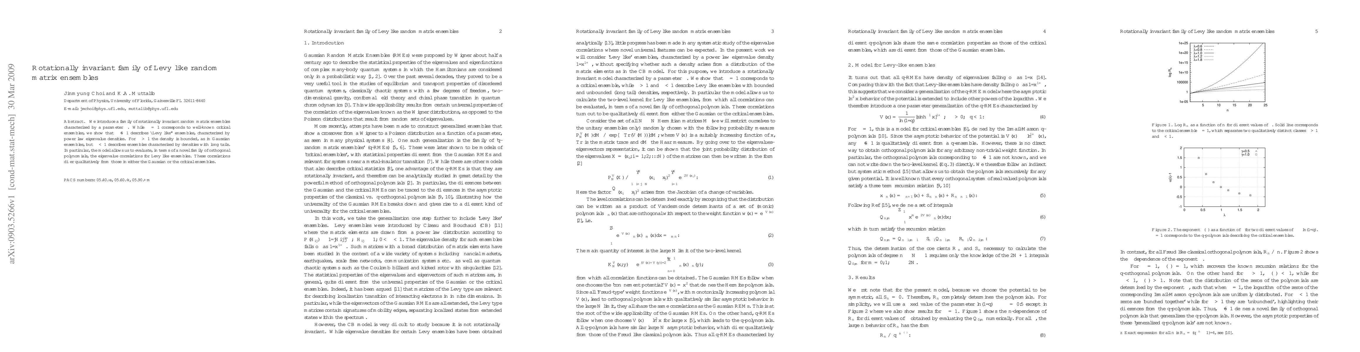 We introduce a family of rotationally invariant random matrix ensembles characterized by a parameter $\lambda$. While $\lambda=1$ corresponds to well-known critical ensembles, we show that $\lambda \ne 1$ describes "L\'evy like" ensembles, characterized by power law eigenvalue densities. For $\lambda > 1$ the density is bounded, as in Gaussian ensembles, but $\lambda <1$ describes ensembles characterized by densities with long tails. In particular, the model allows us to evaluate, in terms of a novel family of orthogonal polynomials, the eigenvalue correlations for L\'evy like ensembles. These correlations differ qualitatively from those in either the Gaussian or the critical ensembles.