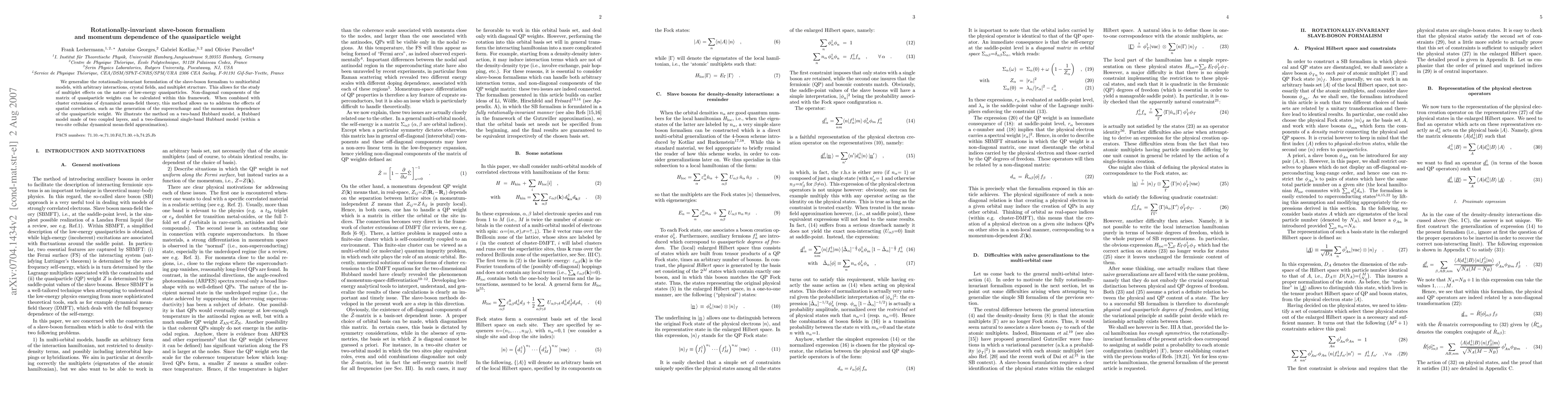 This paper generalizes the rotationally-invariant slave-boson formalism to multiorbital models, enabling the study of multiplet effects on quasiparticles. It calculates non-diagonal quasiparticle weights and explores spatial correlations' impact on quasiparticle weight momentum dependence using cluster extensions of dynamical mean-field theory.