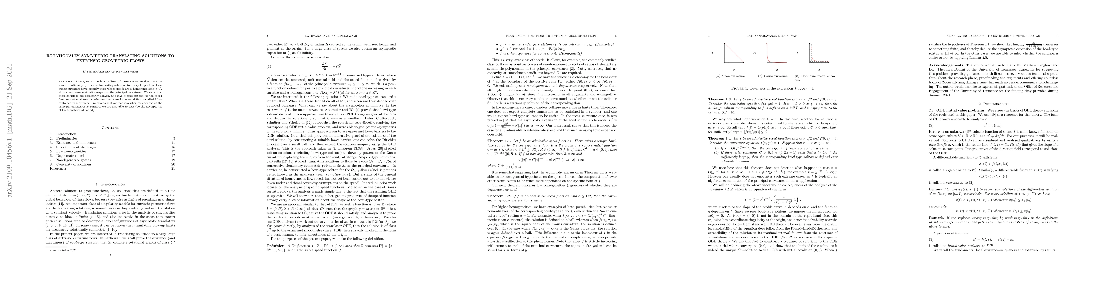 This research identifies and constructs rotationally symmetric translating solutions for a broad class of extrinsic curvature flows, characterized by $alpha$-homogeneous, elliptic, and symmetrical speeds concerning principal curvatures. The study demonstrates these solutions' convexity and specifies criteria for speed functions determining their domain, whether the whole space or a cylinder. For nonzero speeds when at least one principal curvature is nonzero, the paper also describes the translator's asymptotic behavior at infinity.