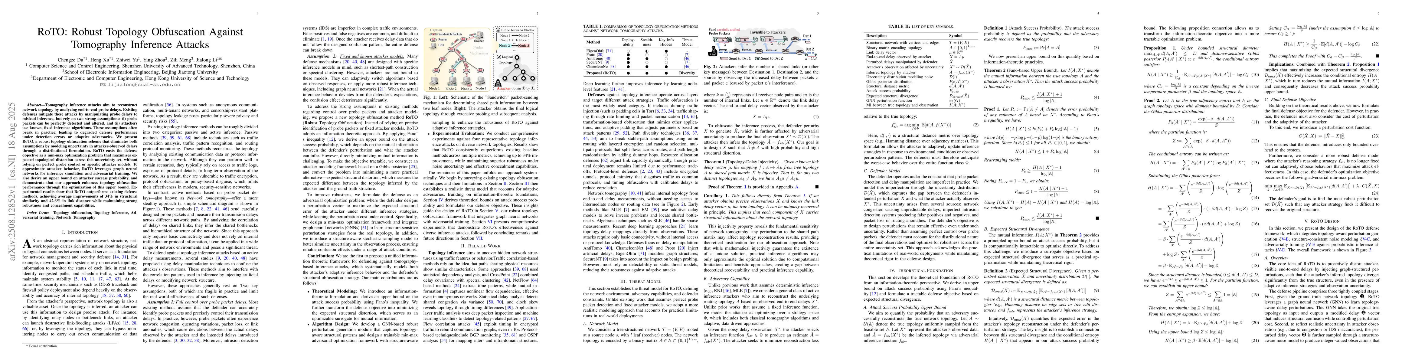 This work introduces RoTO, a robust topology obfuscation scheme that addresses fundamental limitations of existing defenses by eliminating assumptions about perfect probe packet detection and fixed attacker models, making it more applicable to real-world scenarios.