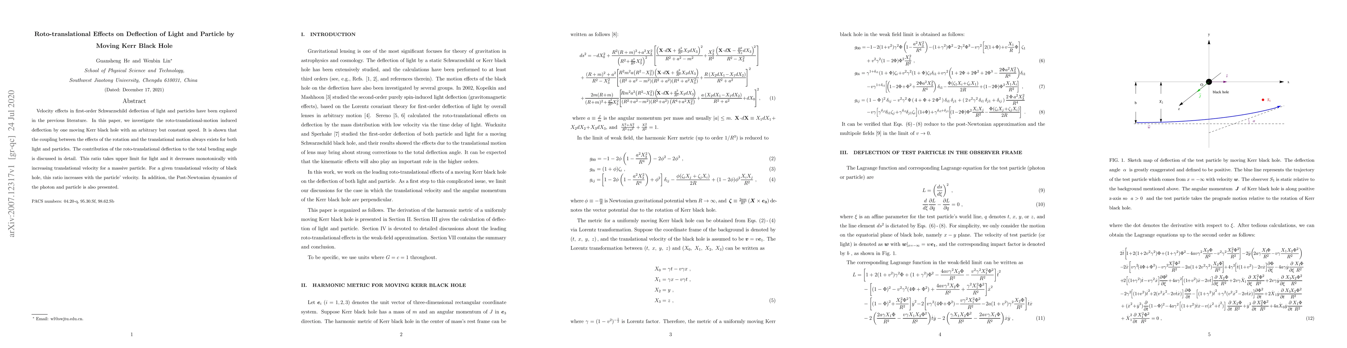 This paper explores the deflection of light and particles by a moving Kerr black hole considering both rotational and translational motion. It reveals that the coupling between these motions affects the deflection angle, with the roto-translational contribution varying for light and massive particles based on their velocities.