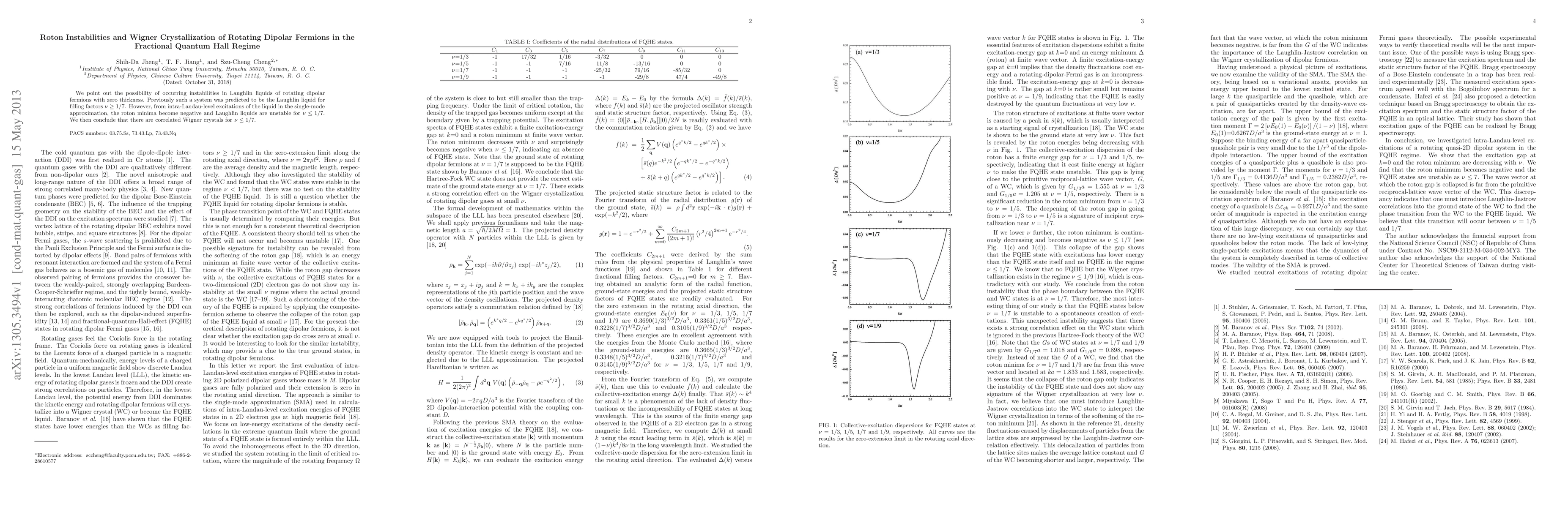 We point out the possibility of occurring instabilities in Laughlin liquids of rotating dipolar fermions with zero thickness. Previously such a system was predicted to be the Laughlin liquid for filling factors being greater and equal to 1/7. However, from intra-Landau-level excitations of the liquid in the single-mode approximation, the roton minima become negative and Laughlin liquids are unstable for filling factors being less and equal to 1/7. We then conclude that there are correlated Wigner crystals for filling factors being less and equal to 1/7.
