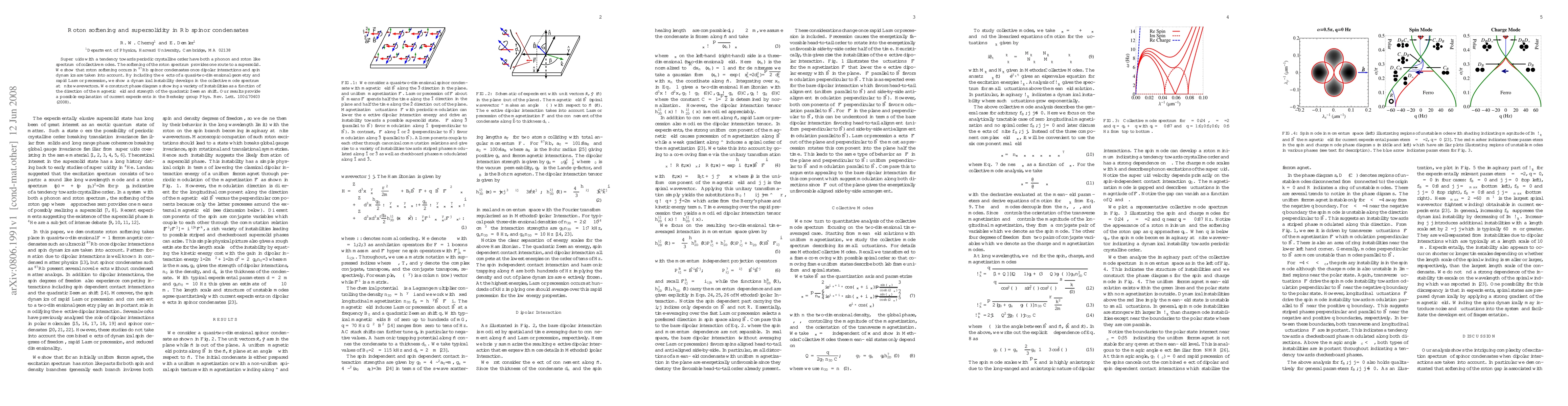 This paper investigates roton softening and supersolidity in 87Rb spinor condensates, demonstrating that dipolar interactions and spin dynamics lead to a dynamical instability in the collective mode spectrum. The study constructs phase diagrams to explore instabilities under varying magnetic field directions and Zeeman shifts, providing insights into experimental observations in supersolids.